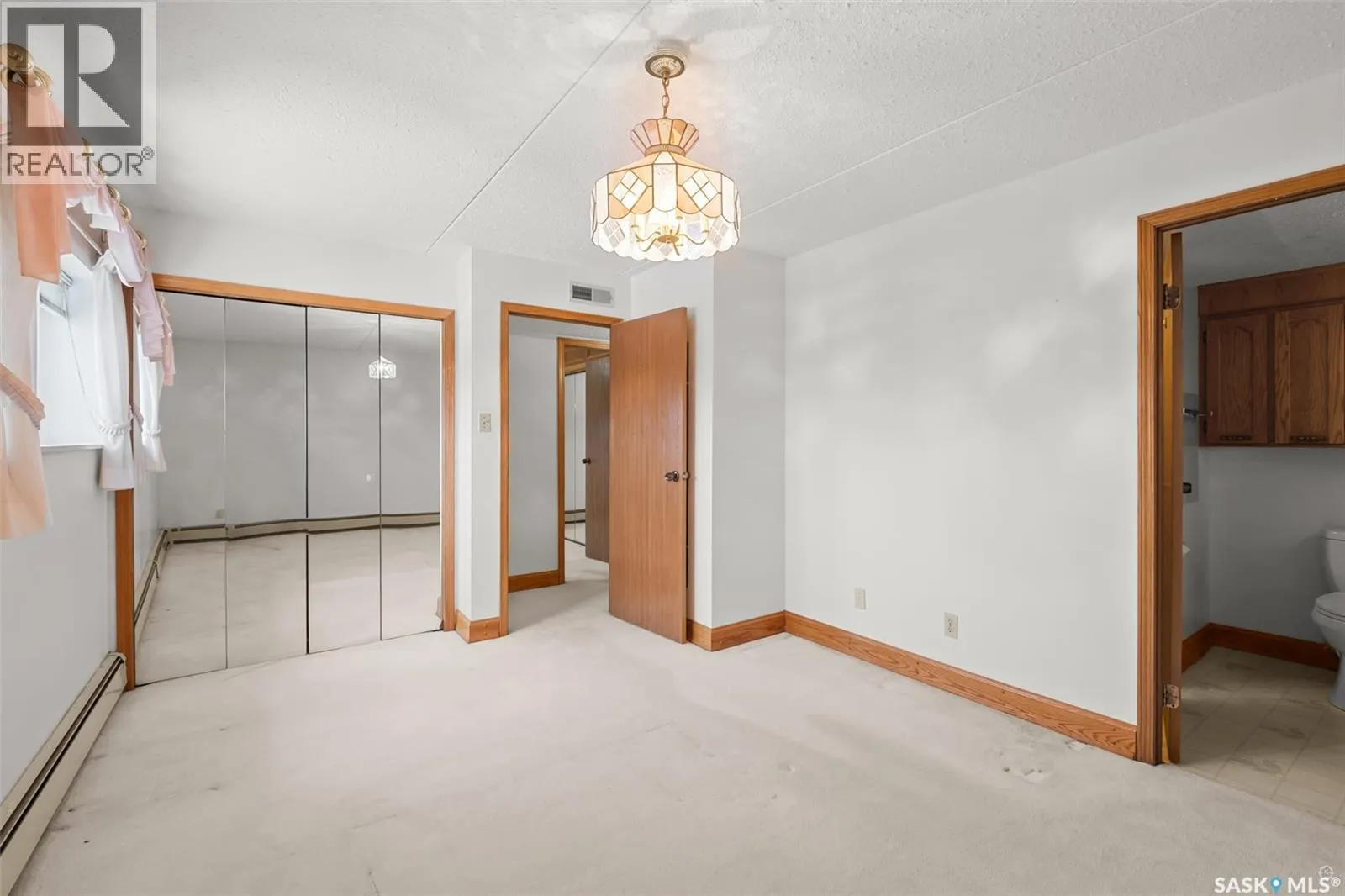 Spacious river front condo located in the Riviera condominium complex. This fourth floor, northwest corner unit provides an open concept floor plan with an abundance of natural light and a panoramic view of the North Saskatchewan River. The 1216 square foot unit offers a bright living room and dining area with Swarovski crystal chandelier and sconces, U-shaped oak kitchen, two