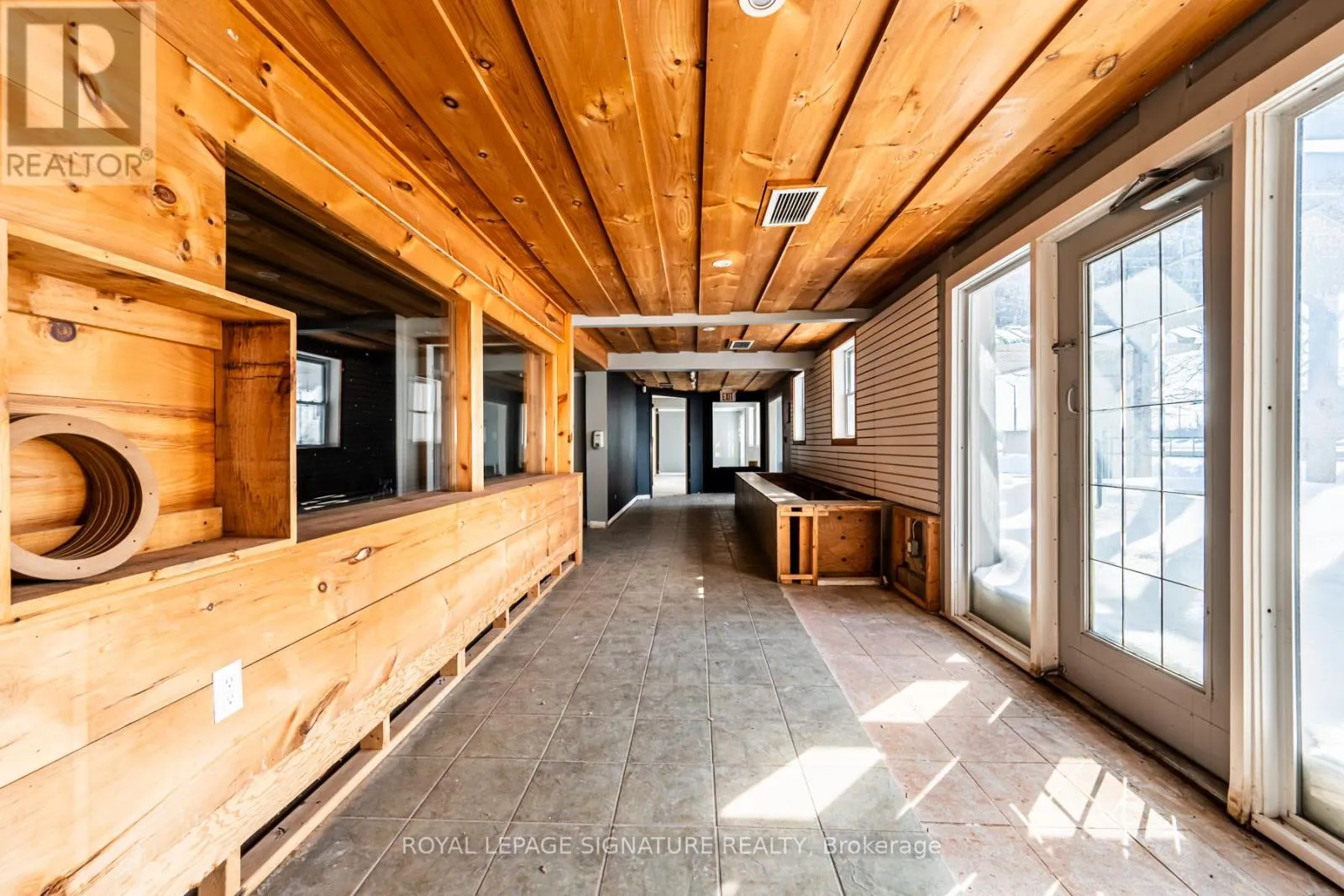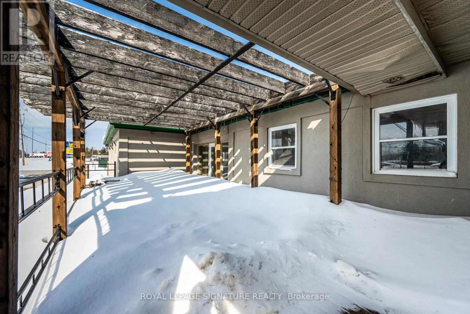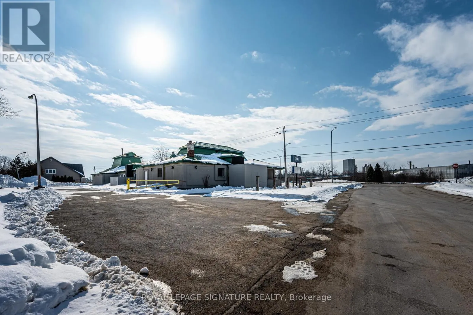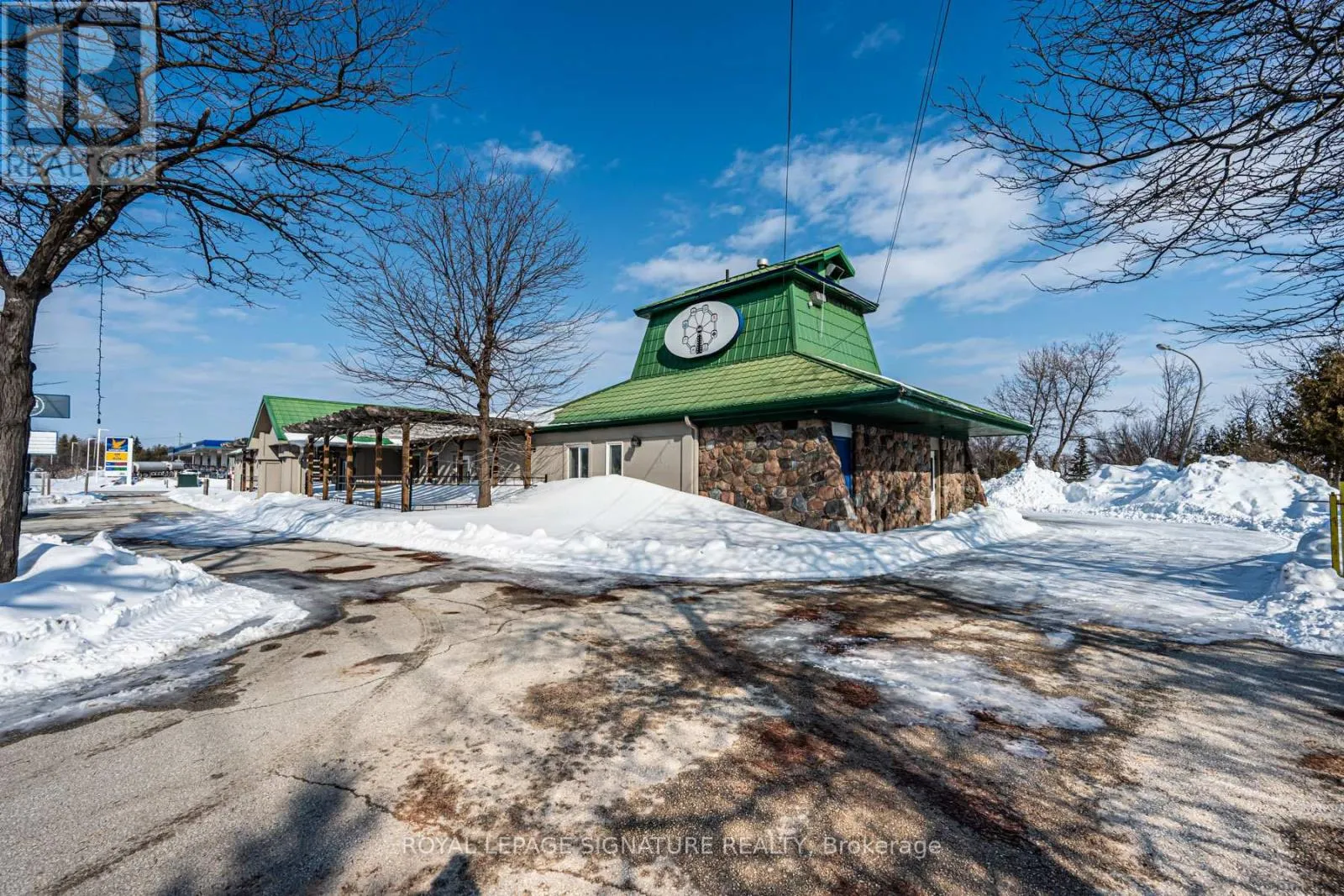 Prime corner commercial building in Collingwood offering outstanding visibility and signage exposure at the entrance to town. Strategically positioned backing onto a prestigious residential community of luxury homes, including waterfront properties, this location benefits from strong vehicle traffic and a growing surrounding population base. The property offers ample on-site parking with convenient access from both Highway 26 and Robert Street.