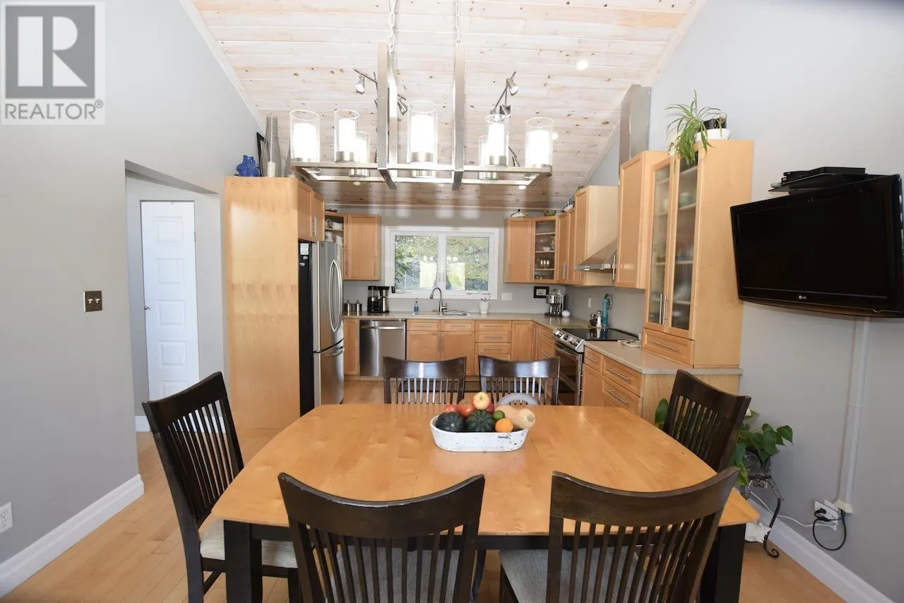 This waterfront home with over 2400 sq. ft. living space on sought after 5000+ acre trout and muskie fishing class Lake Lauzon, Ontario, CANADA offers a harmonious blend of modern comfort and rustic charm. Spread across three floors, this home features an open concept design, connecting the kitchen, dining, and living areas. Vaulted ceilings with wooden beams add character