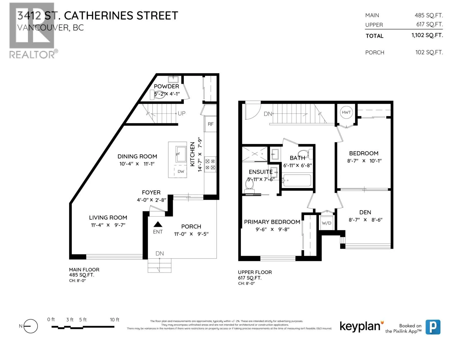 This gorgeous townhome offers a private walk-up entry, 2-beds + den, 3-baths, & 1,102 sqft of sophisticated interior space. Main level boasts a thoughtfully designed open-concept layout with wide-plank flooring throughout; powder rm; kitchen with luxury appliances, gas range, excellent cabinet & counter space, island with breakfast bar, & sliding door access to the private covered patio that offers year-round