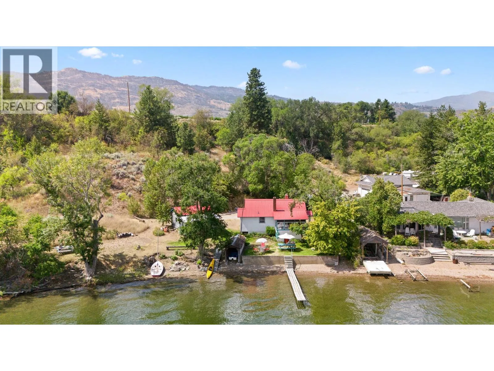 PRIVATE BEACH. BREATHTAKING VIEWS. UNLIMITED POTENTIAL. An exceptional opportunity to own nearly three-quarters of an acre on the pristine shores of Osoyoos Lake, featuring over 200 feet of direct lakefront and your very own private beach. Nestled at the end of a quiet, no-through road, this rare offering boasts 180-degree, unobstructed lake and mountain views with peaceful east-facing sunrises. The