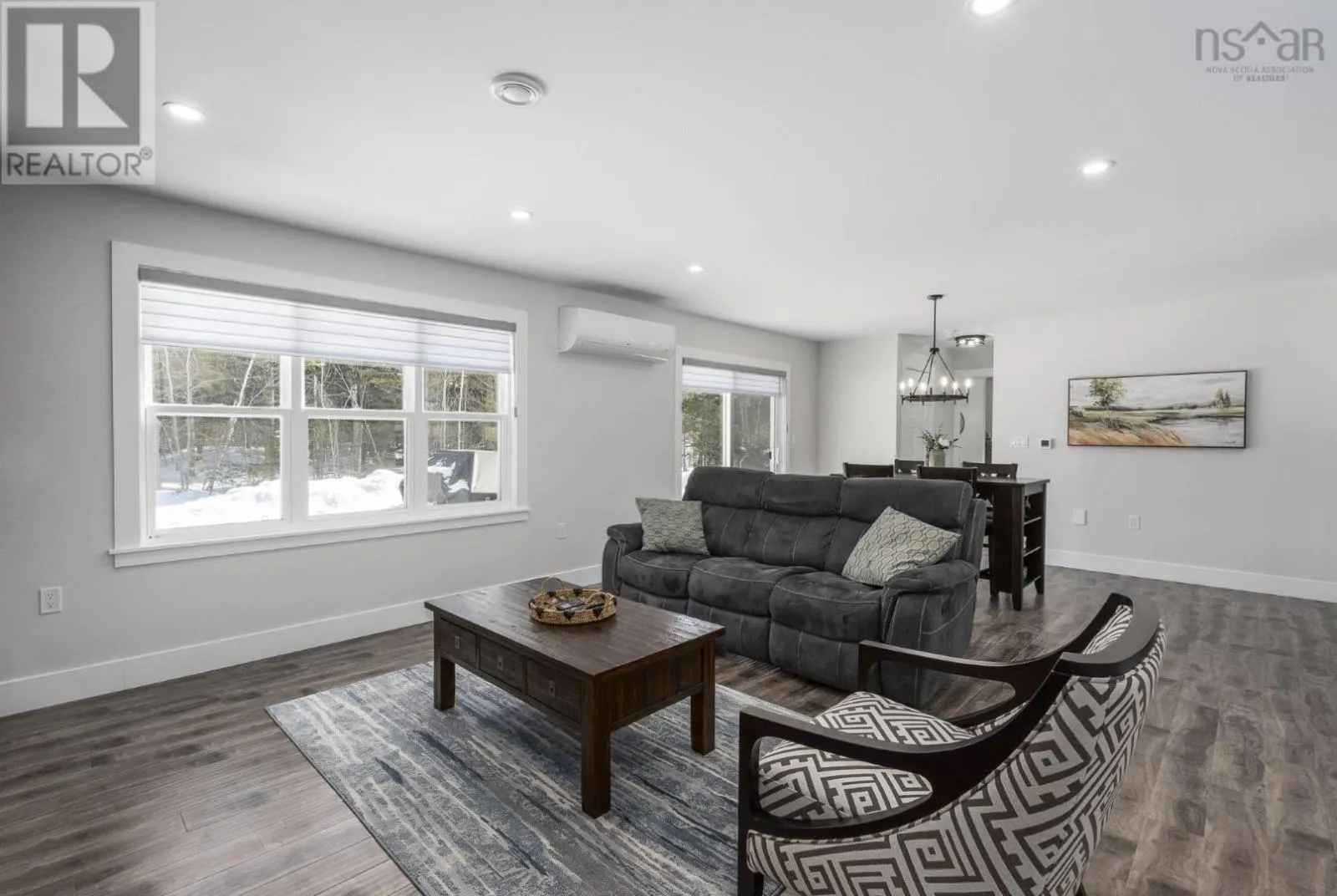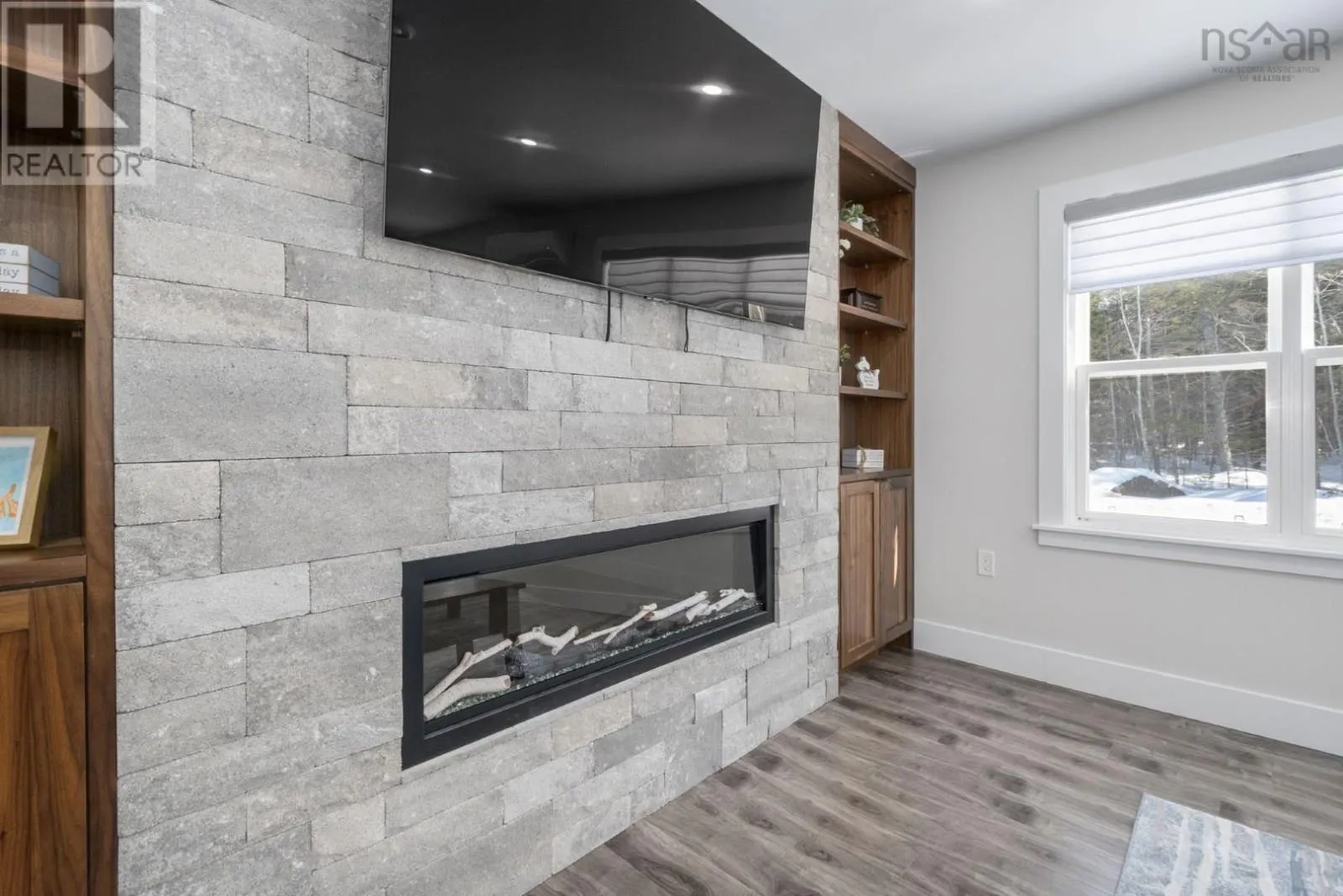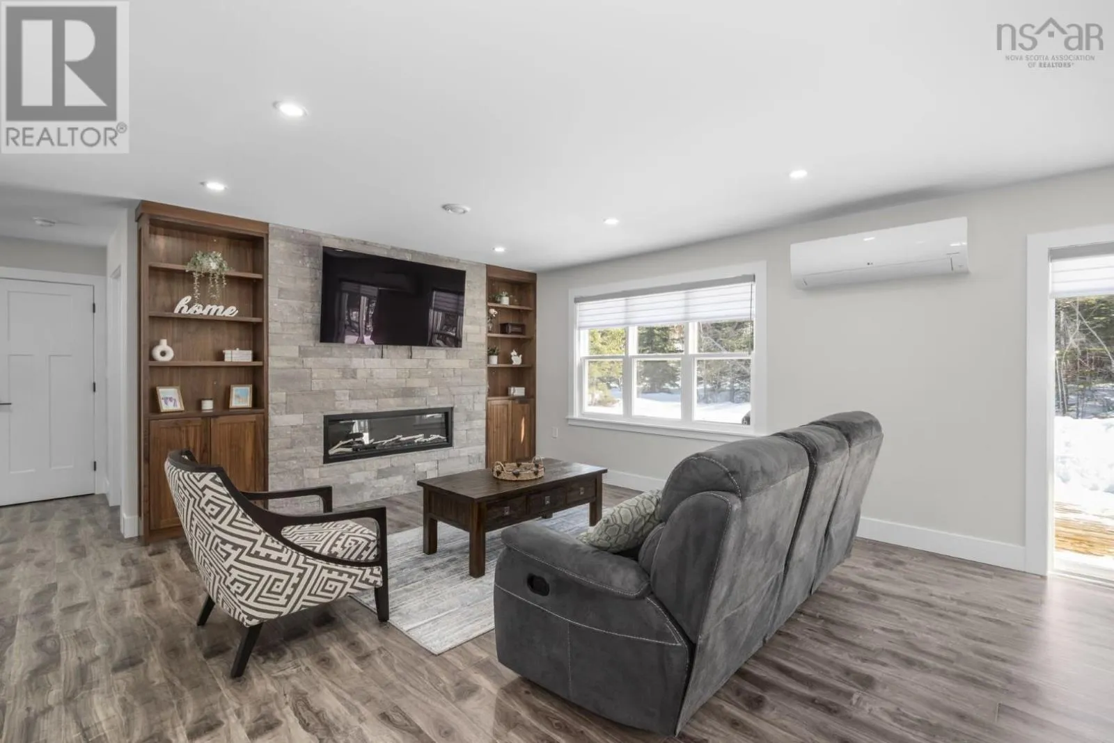 Enjoy peaceful country living in this almost brand new 2-bedroom, 1.5-bath bungalow. A welcoming entry leads to an open-concept living space highlighted by a stunning feature wall with walnut built-in bookshelves and a cozy electric fireplace, along with an efficient ductless heat pump. The stylish kitchen features Wi-Fi appliances, white shaker-style cabinetry, Corian countertops and backsplash, and a beautiful walnut