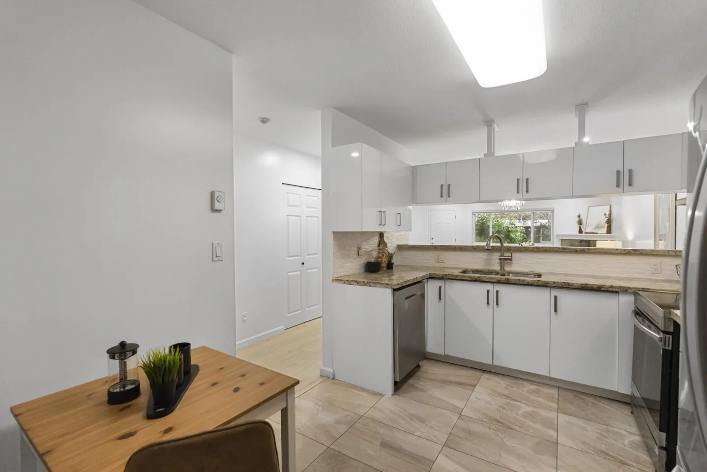 Discover single-level living in this beautifully updated 2-bed, 2-bath corner townhome! Offering a spacious 1,264 sqft layout, this home sits in a secure, centrally located gated community. Inside, enjoy fresh paint, new flooring, and a modern kitchen featuring new cabinets and stainless steel appliances. Relax on your private patio or take advantage of 2 dedicated parking spots. The location is