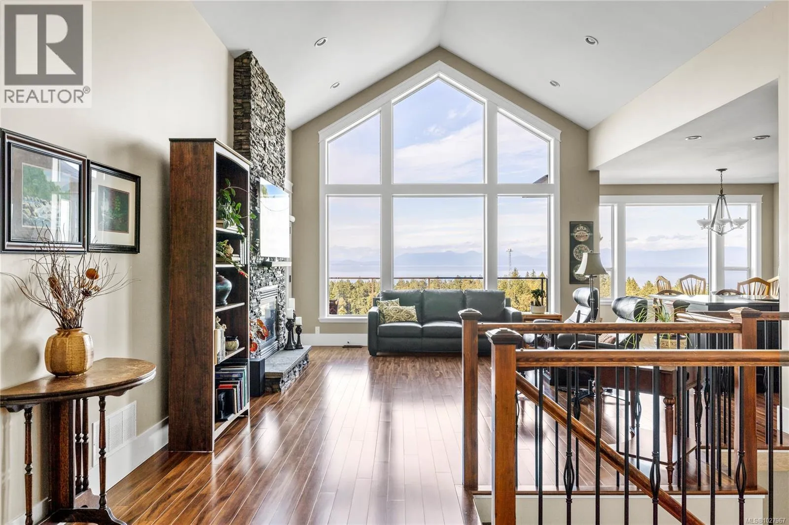 Perched in the highly desirable North Nanaimo neighbourhood, this home captures sweeping ocean views across the Georgia Strait toward the coastal mountains — a stunning backdrop that immediately steals your attention the moment you step inside. Large picture windows stretch across the home, perfectly framing the view and filling the main living space with natural light. The open-concept living room,