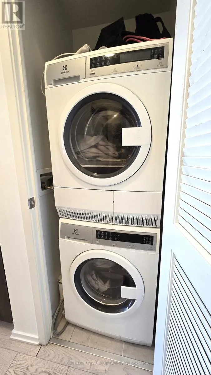 Superb 1 bedroom 1 bath layout with large balcony. Over 570sf of interior space and expansive outdoor partially covered retreat (110sf). Floor to ceiling windows with clear east views of the developing greenery of the east Harbourfront. Modern kitchen with integrated appliances and center kitchen island for dining and additional storage. Engineered hardwood flooring throughout. Convenient ensuite laundry. Ample storage