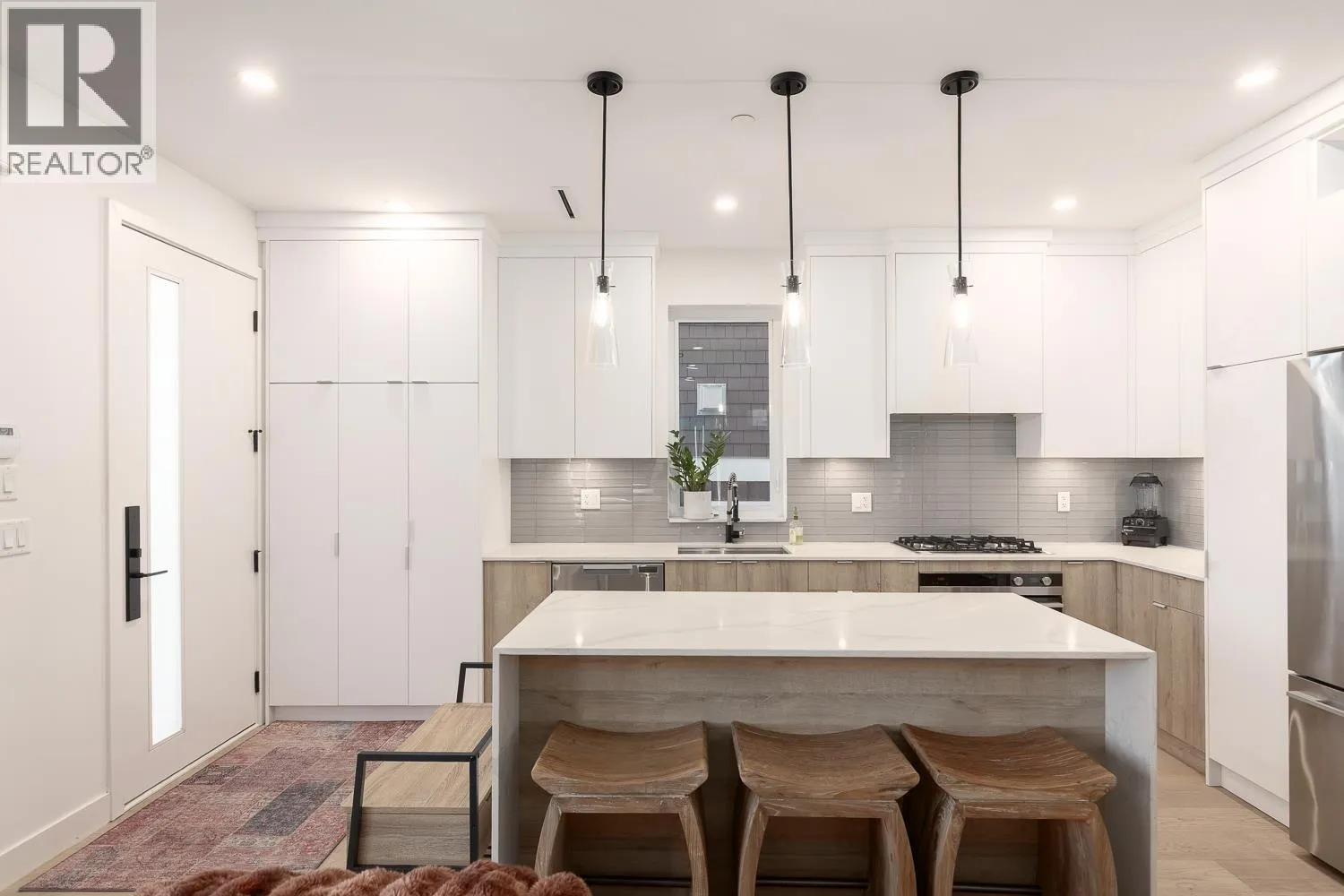 Beautifully designed Point Grey 1/2 duplex by LUXE and built by Casa Loma Homes, just 3 years old with custom owner upgrades and the bonus of no GST. Bright open main floor with 9 ft ceilings and a chef´s kitchen featuring waterfall island, quartz counters, stainless appliances and a custom living room feature wall. Three spacious bedrooms, each with a