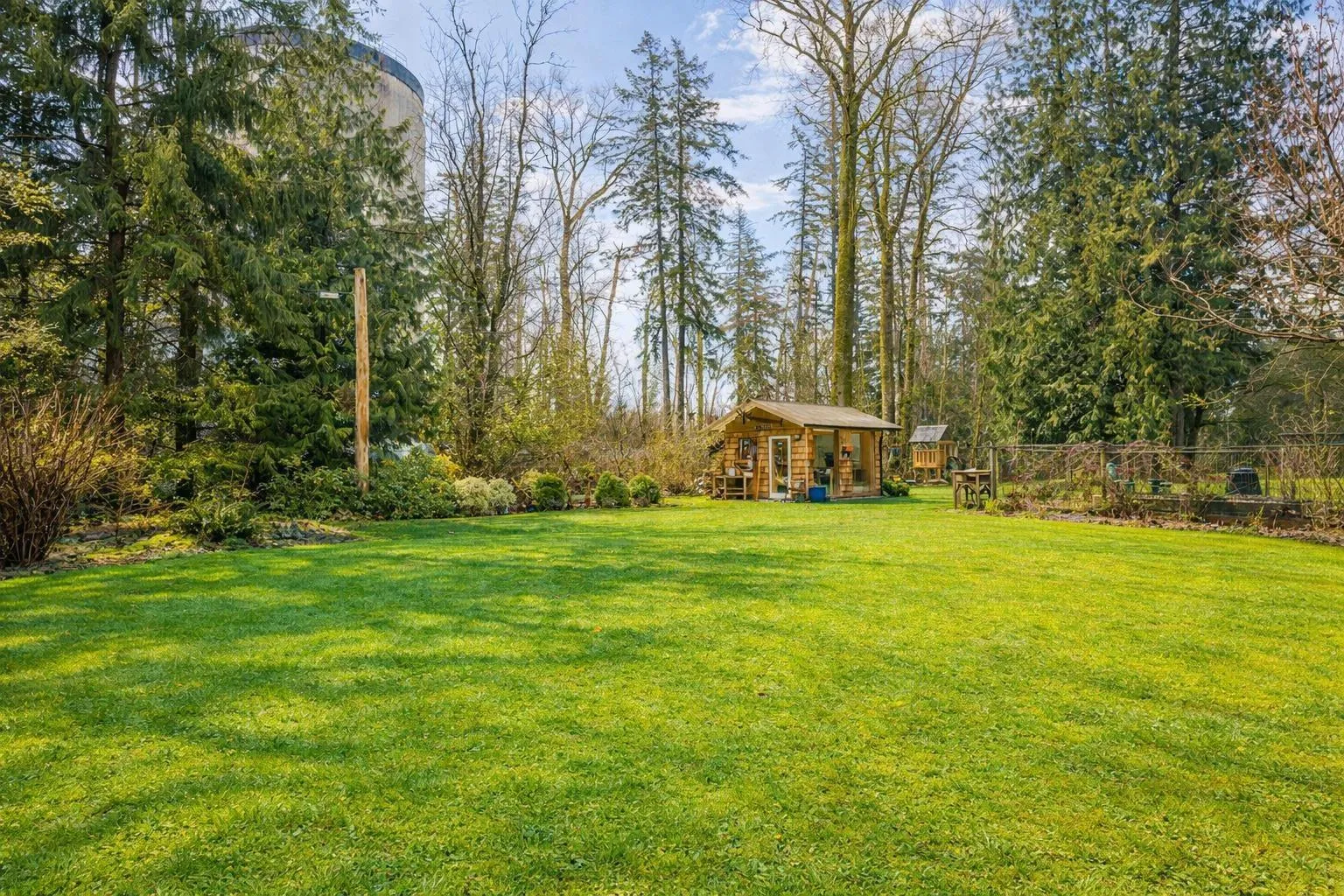 Rare find! Short walk to Murrayville town center – Gorgeous private parklike 2.5 acre back to nature retreat. On city water. 55’x22′ heated & insulated dream workshop with 11′ ceiling, 220 & attic storage, composed of a Triple bay & a Double bay separated by double overhead door. Nicely updated 2139 sqft post & beam 3 bedroom & games room