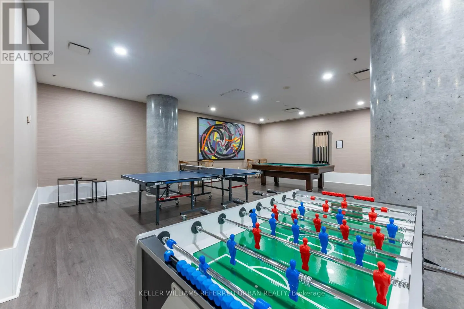 Upgraded designer two bedroom plus den condo at M5V Condos, in the central King West area. Large 1,358 sq ft interior + 195 sq ft over two balconies. ***** So many unique features, such as: private locker room beside unit, gas cooktop, gas bbq outlet, two balconies, bathroom window, huge primary bedroom, office with built-ins, and a nice entry to