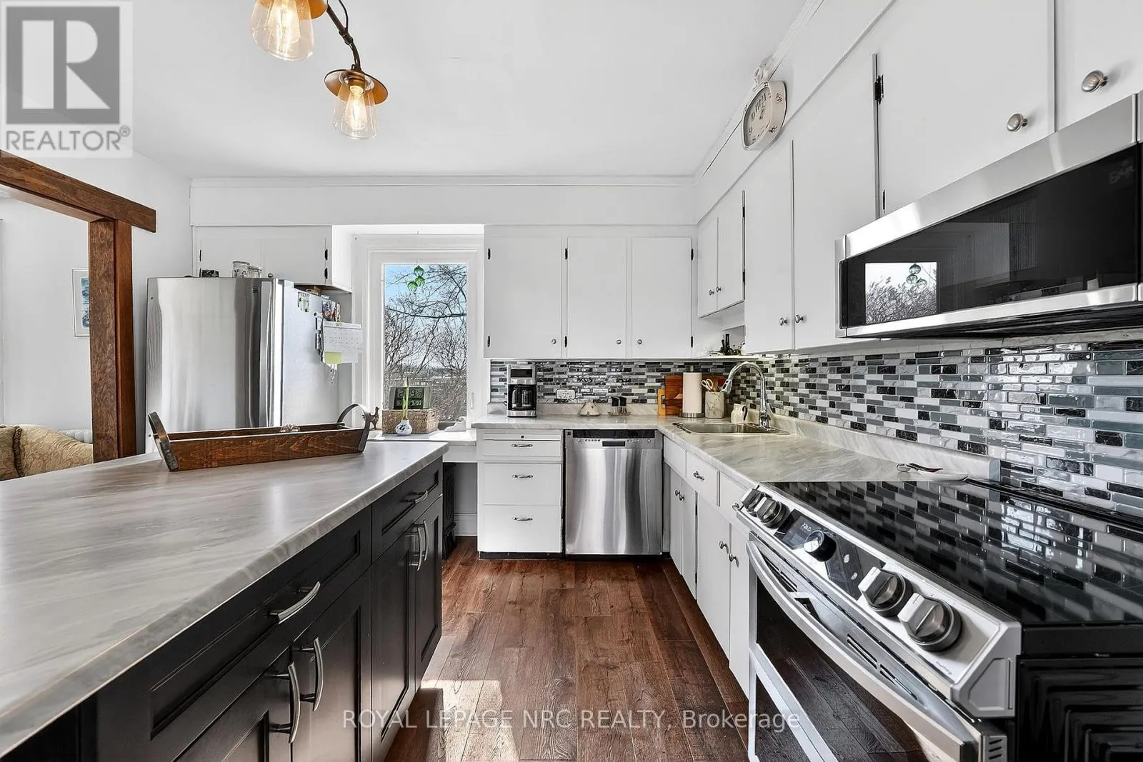 into the sunroom off the driveway with plenty of storage for coats/shoes. Gorgeous period door with stain glass feature. Bright and spacious eat-in kitchen with oversized centre island, plenty of cupboards and counter space and gleaming stainless steel appliances. Formal living room as well as relaxed family room off of kitchen, separated by tasteful barn door that opens the space or closes for privacy. Laundry/mud room located at the back of the house off the large deck, which is complete with extra privacy fencing and ideal for dining al fresco spring, summer and fall. Convenient 2-piece bath located in the laundry room with barn door for privacy. Upstairs you will find three spacious bedrooms, all with stunning views all around! The primary bedroom has a large walk-in closet with built-in shelving and has hardwood floors. The other bedrooms are also a very good size, great for family or guests. The landing offers a comfortable nook ideal as office space or quiet reading/study area. Large 4-piece family bath completes the upstairs. The basement is spacious and unfinished. Great additional space could be finished for whatever purpose required. Large horseshoe-shaped driveway, makes it easy to get in and out. Detached double car garage with hydro and extra storage space. Cutes She-shed would be a great craft or office space as well. Fantastic sunrises and stunning sunsets, this period home is at a great price point for families looking to move to Niagara-on-the-Lake! Down road from 2 elementary schools. 10 min drive to Old Town. 2 mins drive to QEW. (id:62650)