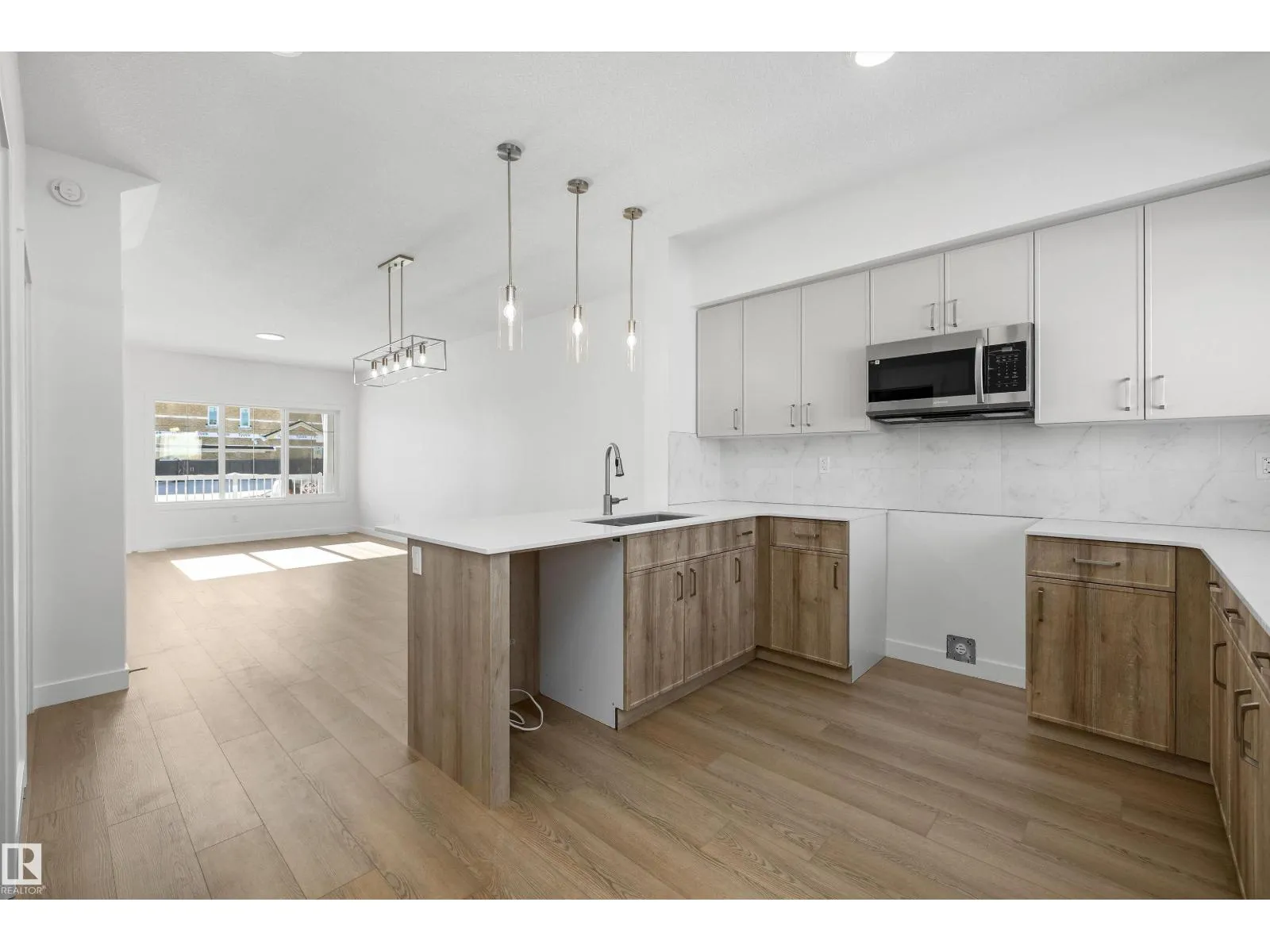 Built by Sterling Homes, this bright and inviting laned home in The Uplands at Riverview offers connected living in one of West Edmonton’s most nature-inspired communities. Triple pane windows and 9’ ceilings create an airy feel, starting with a cozy front living room filled with morning light. At the rear, the kitchen overlooks the yard—ideal for watching kids play or