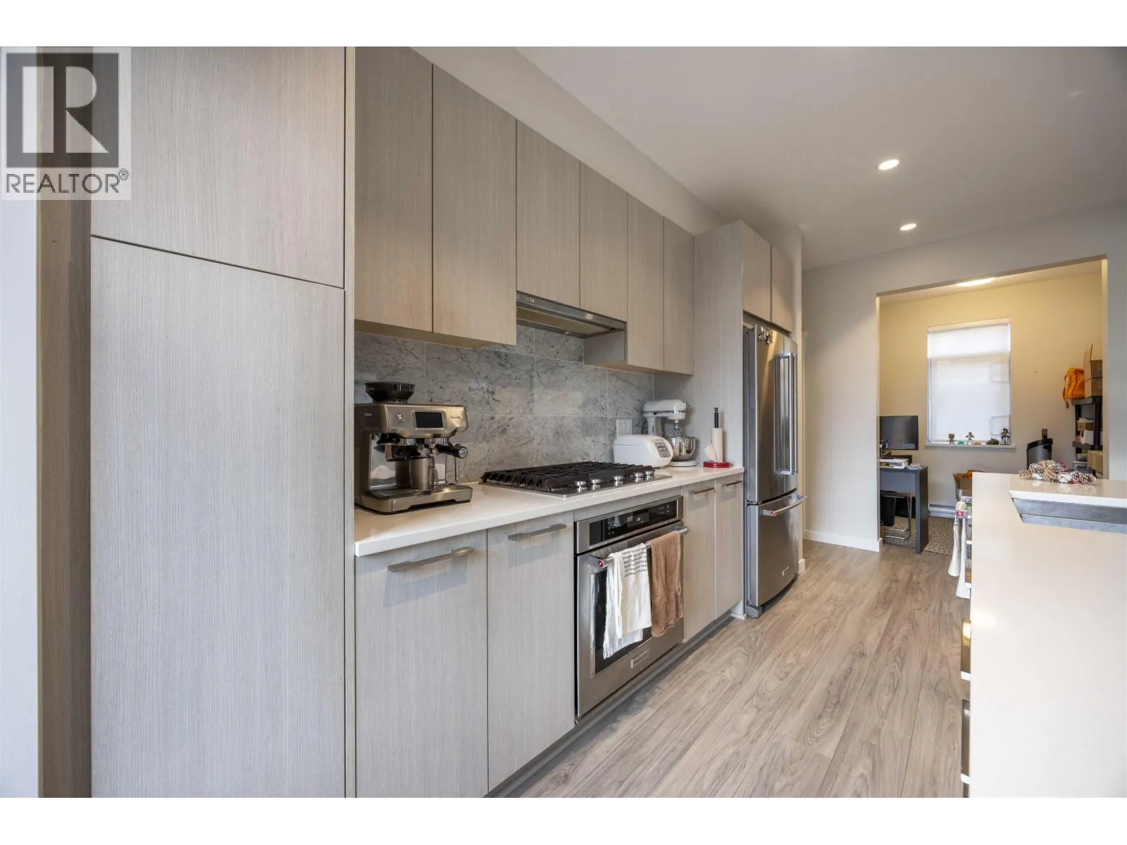 Welcome to BALLANTREE by Polygon, an exquisite 4-bedroom, 3.5-bathroom townhome nestled in the heart of nature on Burke Mountain. This spacious residence features soaring ceilings and a gourmet kitchen centered around a massive stone island, premium SS appliances, and a versatile flex den. Transition seamlessly from the dining area to your private deck for effortless entertaining. The upper level offers