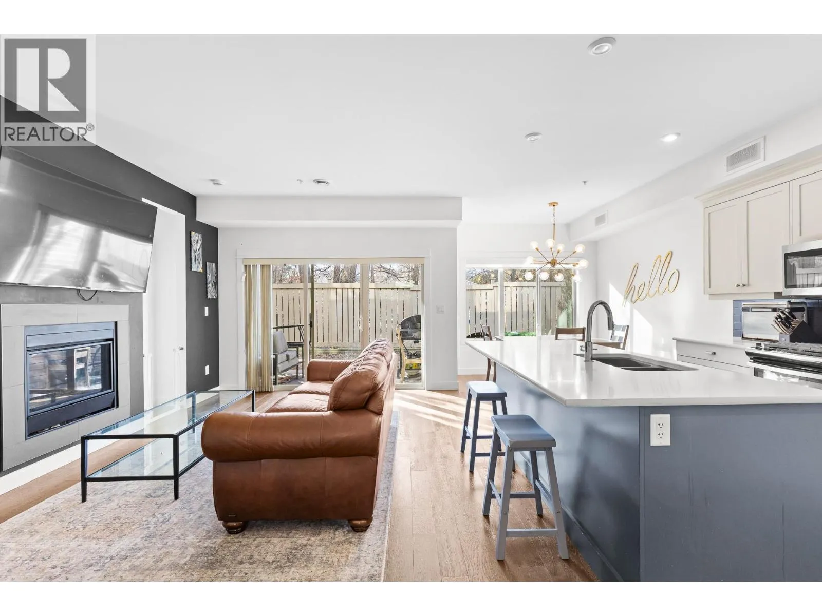 Welcome to 401 – 9563 Jensen Road, a stunning three bedroom plus den, three bathroom modern end-unit townhouse in Winfield Place, located in the heart of Lake Country. This bright, two-storey home offers an open-concept floor plan with high ceilings, expansive windows, and only three units per building for added privacy. The inviting living room features a cozy gas fireplace