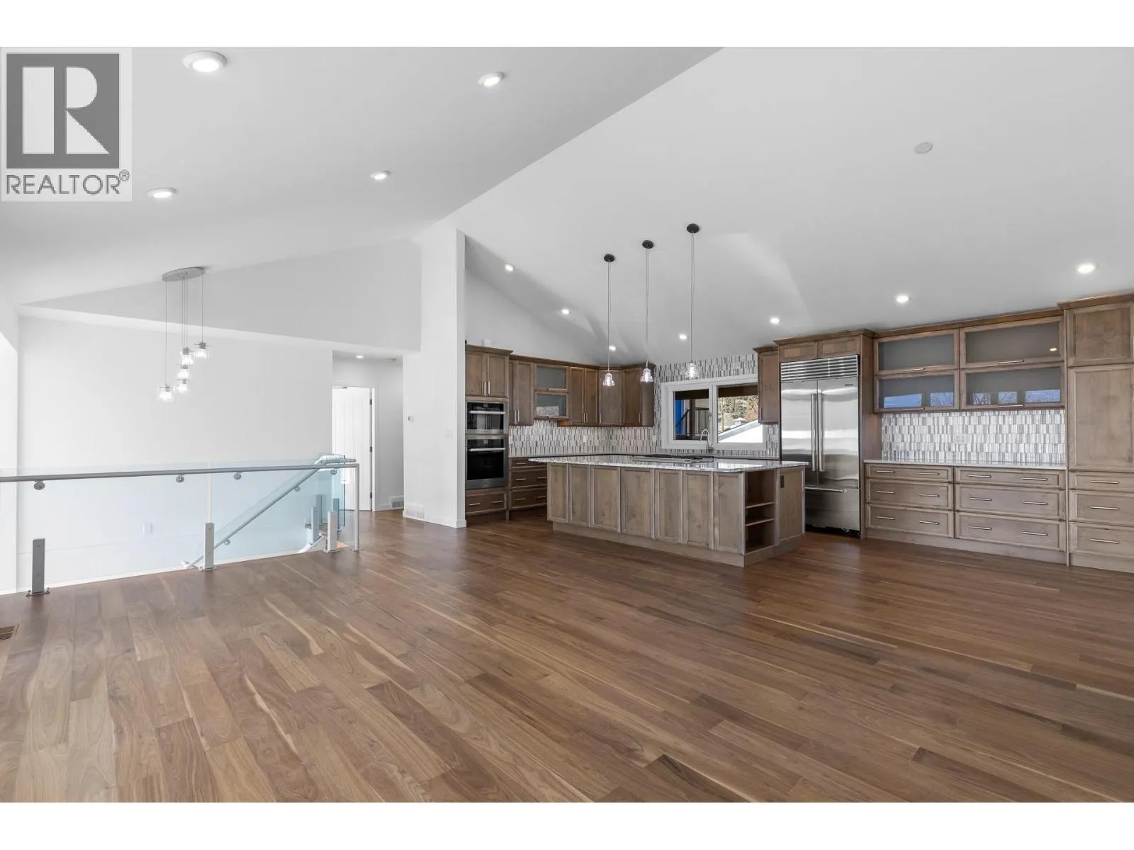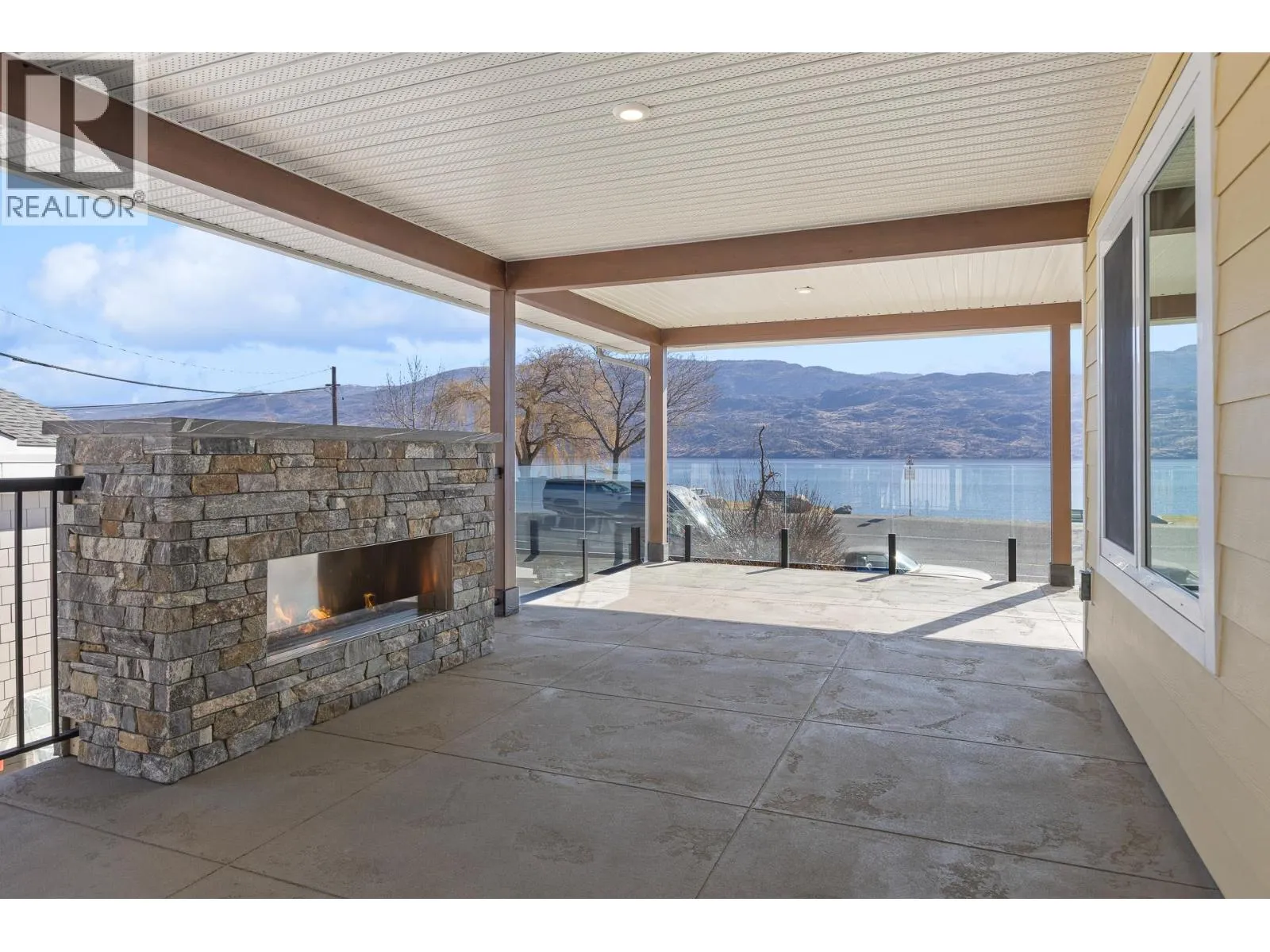 Rare semi-waterfront opportunity on prestigious Beach Avenue, directly across from Okanagan Lake, offering exceptional lake views and the ultimate Okanagan lifestyle. This thoughtfully designed residence captures stunning lake views and offers open-plan living with seamless indoor-outdoor living through multiple expansive glass bi-folding doors that open onto a covered deck with gas fireplace, stamped concrete, and glass railings. The custom kitchen