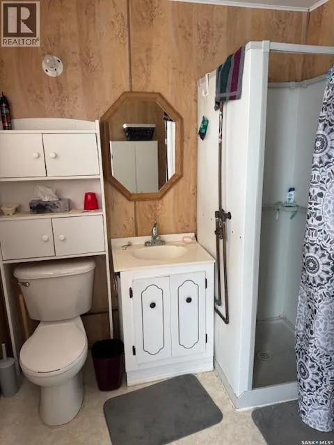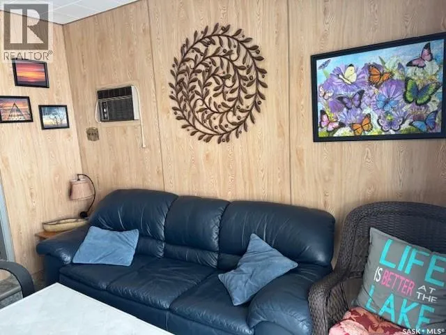 Lakefront cabin at Aquadeo, SK, on the north end of Jackfish Lake. Two-bedroom seasonal, three-piece bath, generis entry, open kitchen/dining area, living room that opens onto a 350 sq ft deck that overlooks the lake. Seasonal water, 750-gal holding tank, and heating are by portable electric wall-plug-in units. Outside is an 8 x 12 ft bunk house with a queen-size