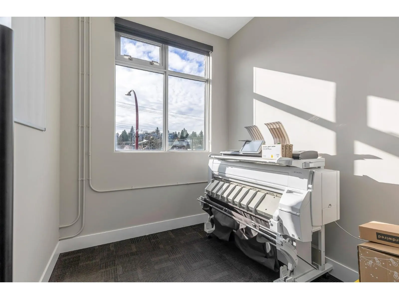 Welcome to this beautiful – recently renovated – office on the 2nd floor of Pioneer Square! Located in Downtown Abbotsford, this well laid out office space features a cozy reception area with built in office desk that leads into a larger bull pen or meeting area in the center of the unit. One full size individual office and one smaller