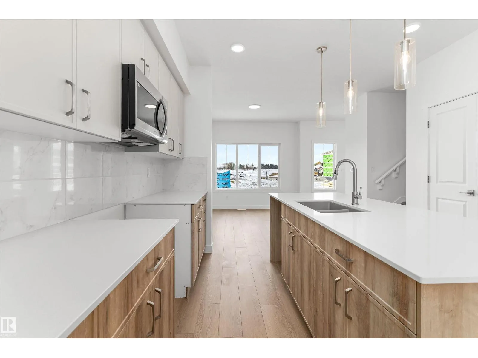 Built by Sterling Homes, this thoughtfully designed laned home in Aster blends natural light, flexibility, and everyday comfort. Triple pane windows and 9’ ceilings brighten the main floor, where a front living room captures morning sun. The rear kitchen overlooks the yard and features quartz counters, a central island, upgraded cabinetry, a pantry, and a Silgranit sink. The dining nook