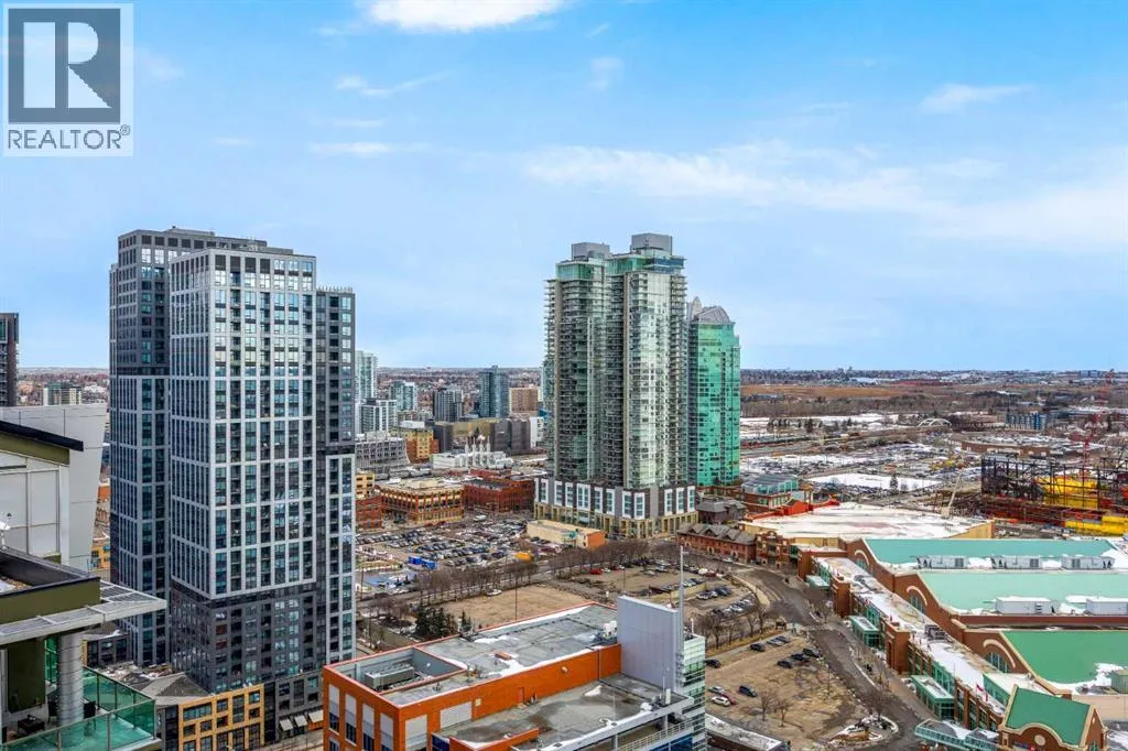 Welcome to VETRO, one of Calgary’s premier high-rise buildings in the heart of Victoria Park. This stunning 26TH-FLOOR, 2-bedroom, 2-bathroom, 9 FOOT CEILING condo offers city views and modern urban living just steps from the best of downtown. The bright OPEN CONCEPT layout features large windows that flood the space with natural light, highlighting the contemporary finishes and open living