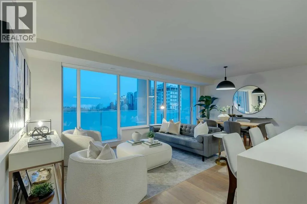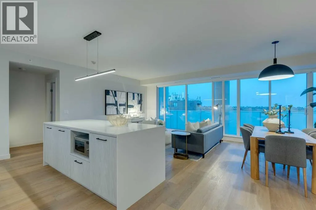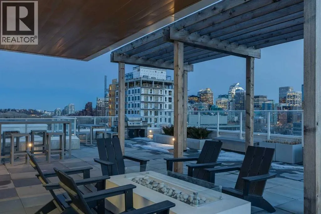 9-foot ceilings, expansive floor-to-ceiling windows, and elegant luxury vinyl plank flooring create a bright, airy atmosphere while framing captivating views of downtown Calgary skyline. The open-concept living and dining area flows effortlessly onto a spacious private balcony—an inviting retreat to relax or entertain while enjoying the glittering city backdrop and convenient natural gas BBQ hookup.At the heart of the home, the designer kitchen is a chef’s dream. Thoughtfully appointed with sleek quartz countertops, abundant cabinetry, and a generous island with counter seating for four, the space is complemented by integrated Fisher & Paykel appliances, delivering both style and performance for everyday living and entertaining alike.The serene primary suite offers a luxurious escape, complete with expansive windows, a spacious walk-through closet, and a spa-inspired ensuite featuring heated floors, a free-standing soaker tub, shower, and dual vanity. Two additional well-proportioned bedrooms and full bathrooms provide exceptional flexibility for family, guests, or a stylish home office.Rarely found in inner-city condominium living, this penthouse includes three titled underground parking stalls and complete with storage locker, and convenient in-suite laundry & storage room —enhancing comfort and practicality.Residents of The Theodore also enjoy access to an extraordinary rooftop terrace, complete with outdoor fire pit, BBQ, lounge seating, and sweeping panoramic views that stretch from sunrise t o dusk. It’s a spectacular setting to unwind and gather with friends.Ideally located just steps from Kensington’s popular boutiques and restaurants, as well as Safeway Kensington, the home is also moments from the picturesque pathways and green space of Riley Park, the Bow River, nearby schools and the downtown core.Combining boutique luxury, an unbeatable inner-city location, and the rare convenience of three parking stalls, this remarkable penthouse offers the pinnacle of elevated urban living in one of Calgary’s most coveted neighbourhoods. (id:62650)