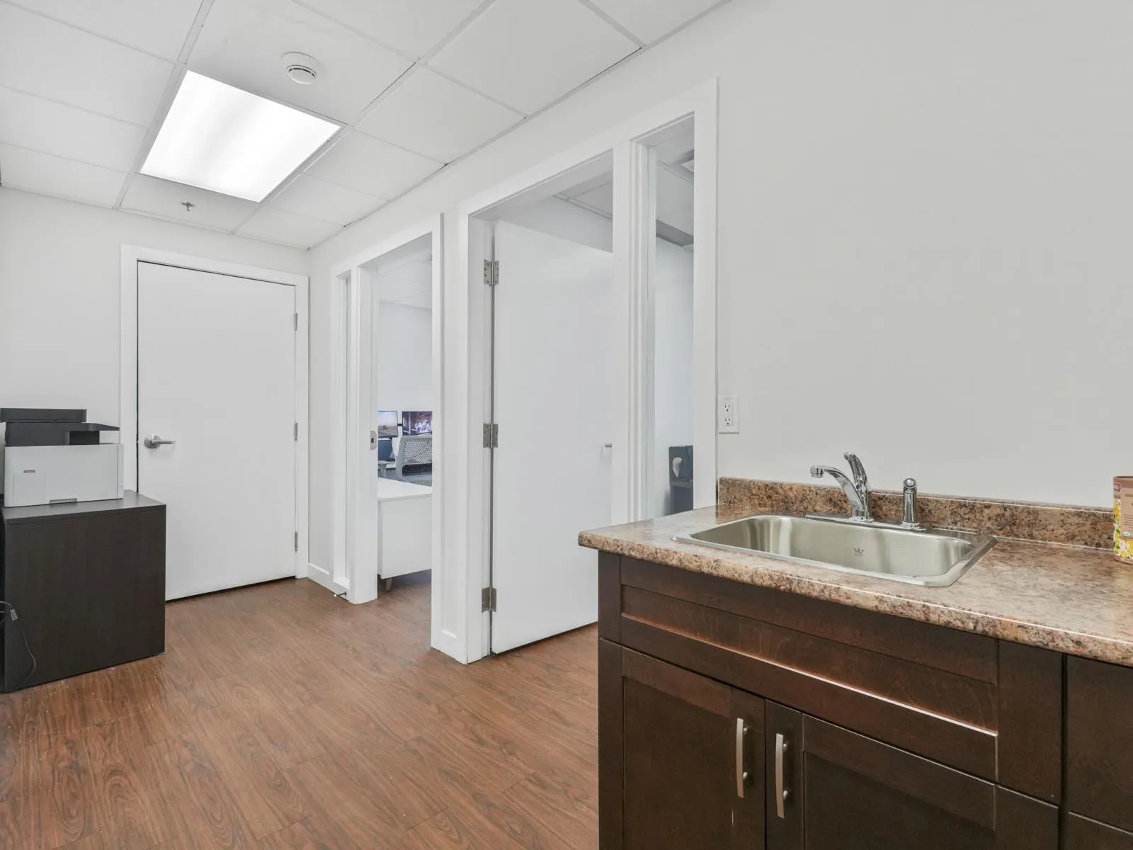This exceptional two-level commercial condo offers over 2200 sq. ft. of beautifully built-out space in a high-visibility location on a busy, high-traffic street, providing excellent exposure for your business. Located very close to South Edmonton Common. The main floor features a welcoming reception area, creating a professional first impression for clients and visitors. A private boardroom offers an ideal setting