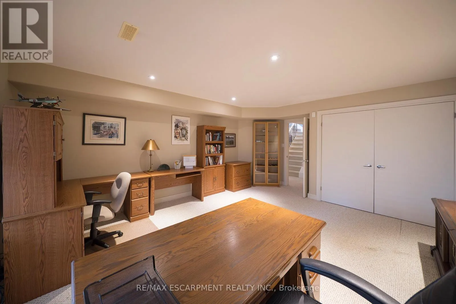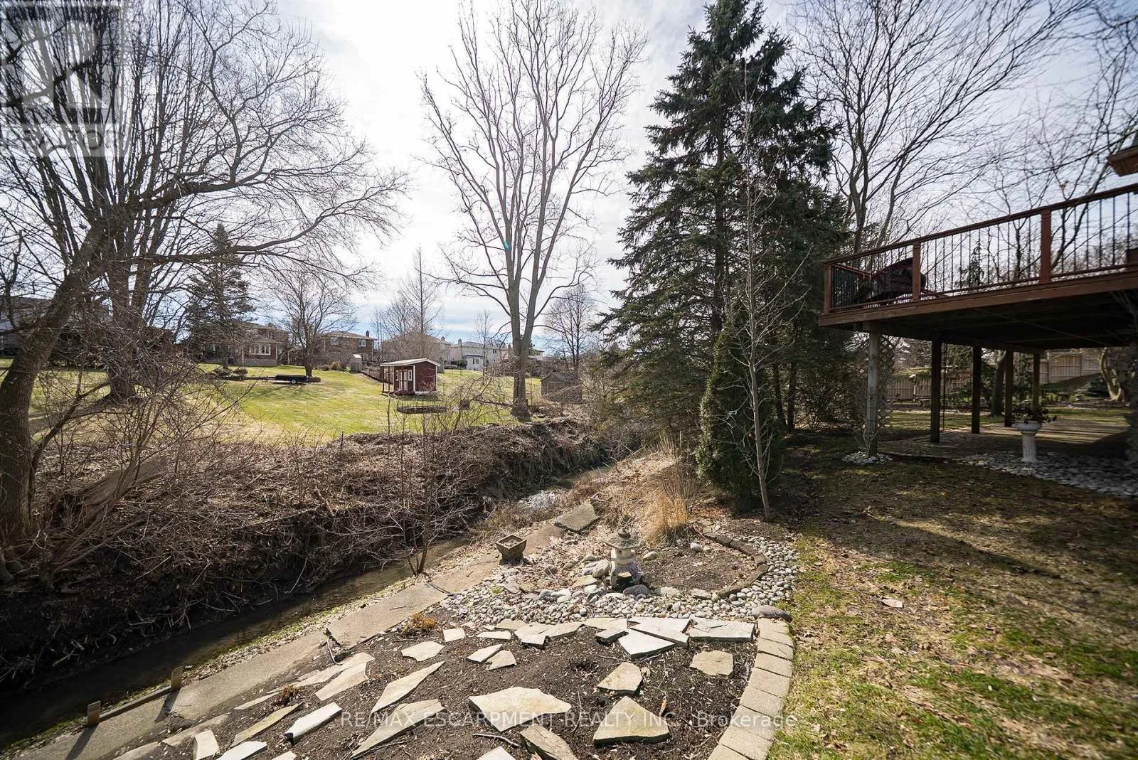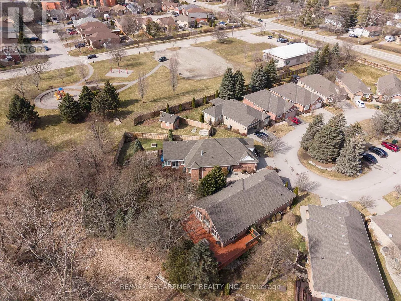 the front entrance, while landscaped grounds offer low-maintenance condo living. The tiled foyer features recessed lighting, built-in shelving, a 2pc bathroom, inside access to the garage and a main floor laundry room. The main level opens to a bright open-concept great room with soaring ceilings, recessed lighting and large windows filling the space with natural light. The great room features formal dining space and a living room with gas fireplace & focal-point ravine windows. The kitchen features shaker-style cabinetry with crown moulding, granite countertops and matching backsplash. Built-in appliances include a wall oven, microwave and cooktop set into the granite. A granite island with seating and storage anchors the space. The adjoining breakfast area features patio doors to an expansive wraparound deck with gas BBQ rough-in overlooking the ravine. The primary bedroom features California shutters, recessed lighting, dual closets and a 4pc ensuite with double sinks, shower and built-in storage. The finished basement includes a recreation room with built-in shelving, speakers & recessed lighting, plus a walk-out to a rear patio. This level also offers 2 bedrooms, a den and a 3pc bathroom with California shutters throughout. A utility room completes the lower level. The rear yard features an interlocking patio surrounded by mature trees, with no rear neighbours and a peaceful ravine view. Located in the prestigious and sought-after Rosedale Estates, this well-maintained bungalow condo offers quiet living in one of Brantford’s most desirable communities close to everyday amenities. (id:62650)