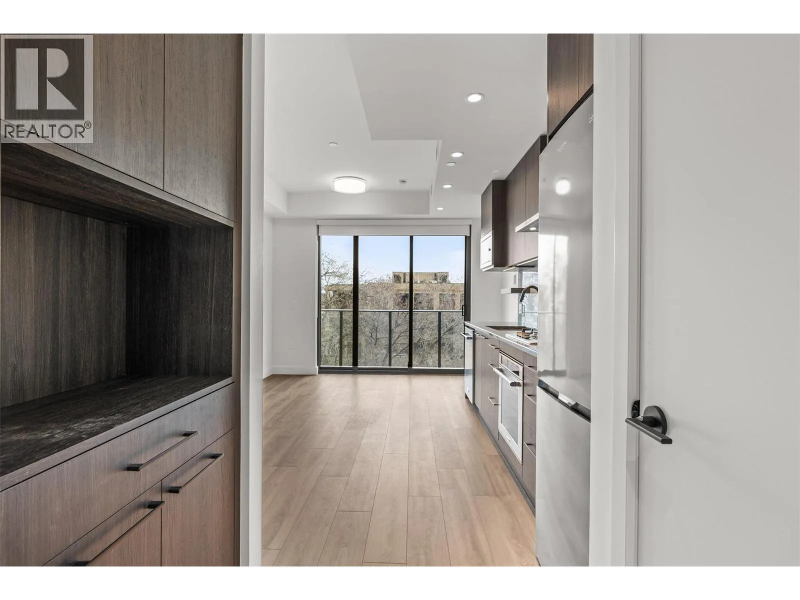 Step into ALMA by Mission Group–this smartly crafted 4th floor studio residence offers approximately 312 sq ft of sun-filled, highly functional living in the heart of Kelowna’s coveted Lower Mission. Designed for effortless Okanagan living, this home blends style and efficiency with ease. The contemporary kitchen showcases flat-panel wood-grain cabinetry, sleek quartz counters, porcelain tile backsplash, and a premium stainless