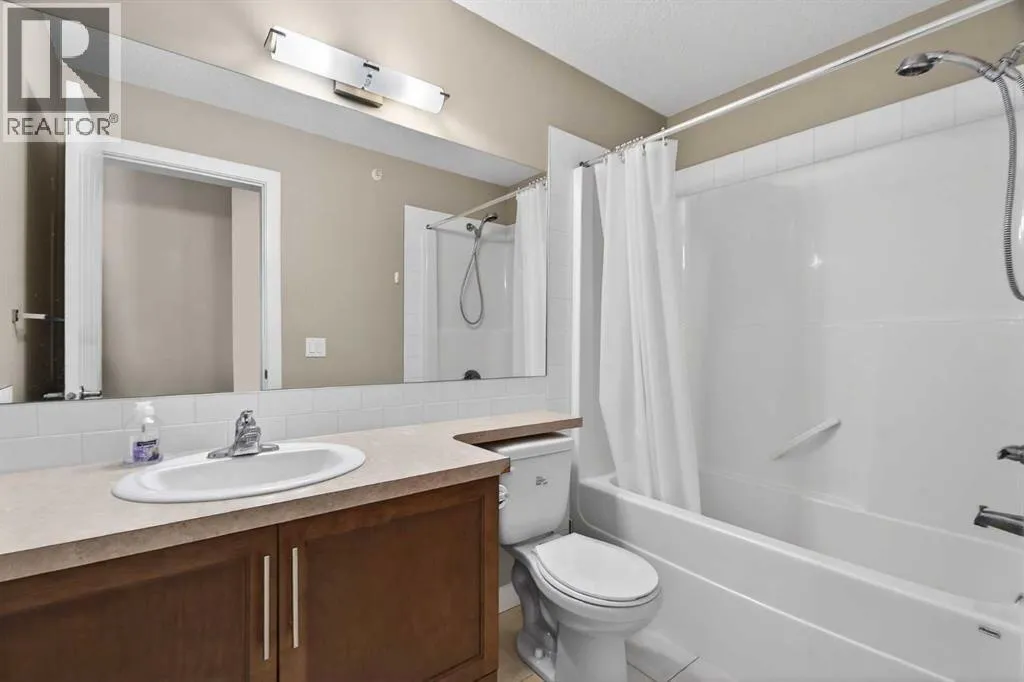 Welcome to this TOP FLOOR 2 BEDROOM + DEN, 2 FULL BATHROOM condo with TITLED UNDERGROUND PARKING in The Edge, ideally located beside EAST LAKE and GENESIS PLACE RECREATION CENTRE in Airdrie.This bright and well designed home offers an excellent floor plan with the bedrooms located on OPPOSITE SIDES OF THE UNIT, providing privacy that works well for shared living,
