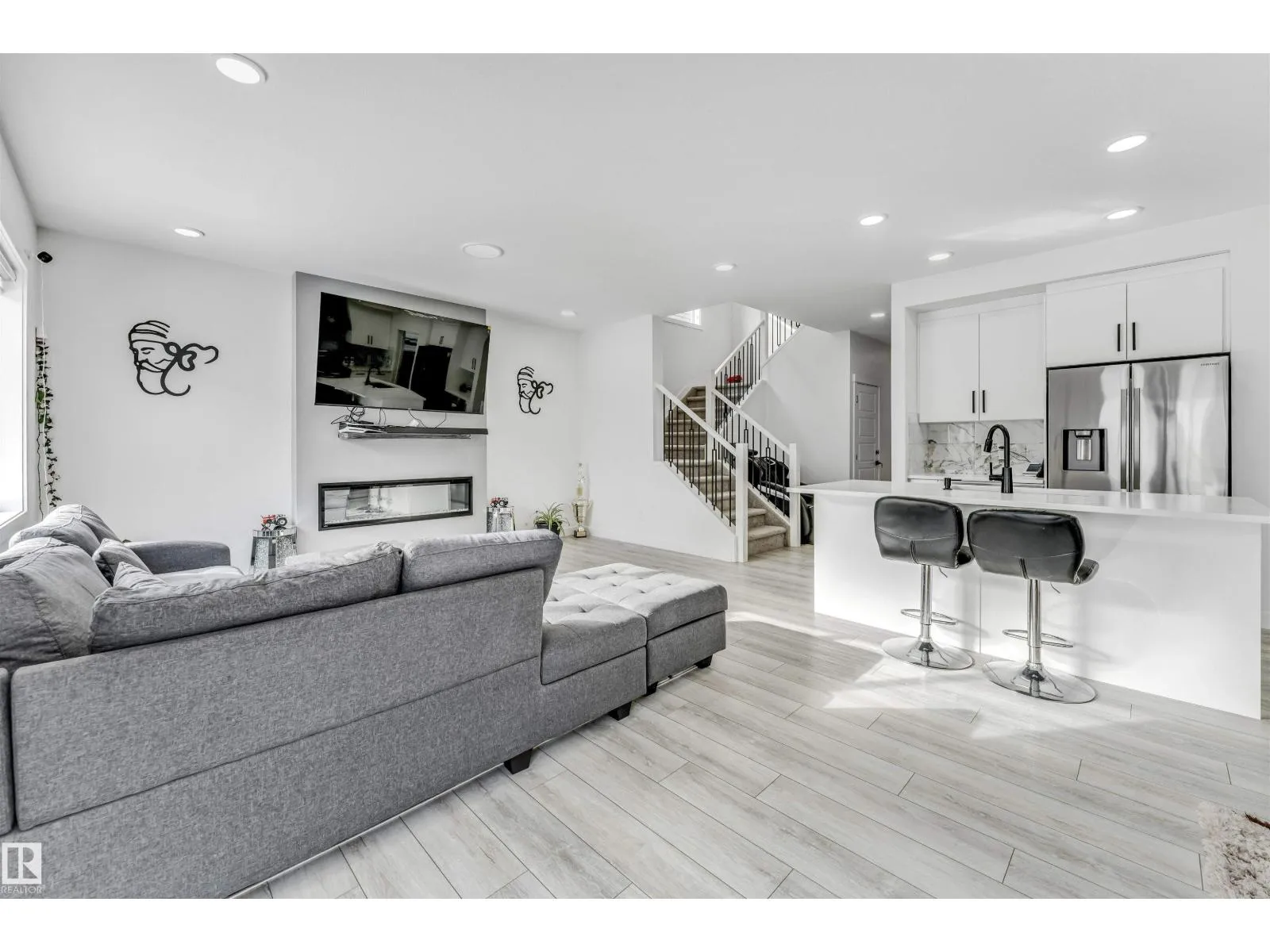 main floor features a full bathroom, ideal for guests or multi-generational living. The bright and beautiful kitchen is the heart of the home with stunning white cabinetry, plenty of counter space, and a separate spice kitchen for added convenience. The cozy living room with fireplace creates the perfect gathering space for family and friends. Upstairs you’ll find 4 spacious bedrooms, offering plenty of room for a growing family. The fully finished basement adds incredible value, featuring a second kitchen and 2 additional bedrooms, making it perfect for extended family. (id:62783)