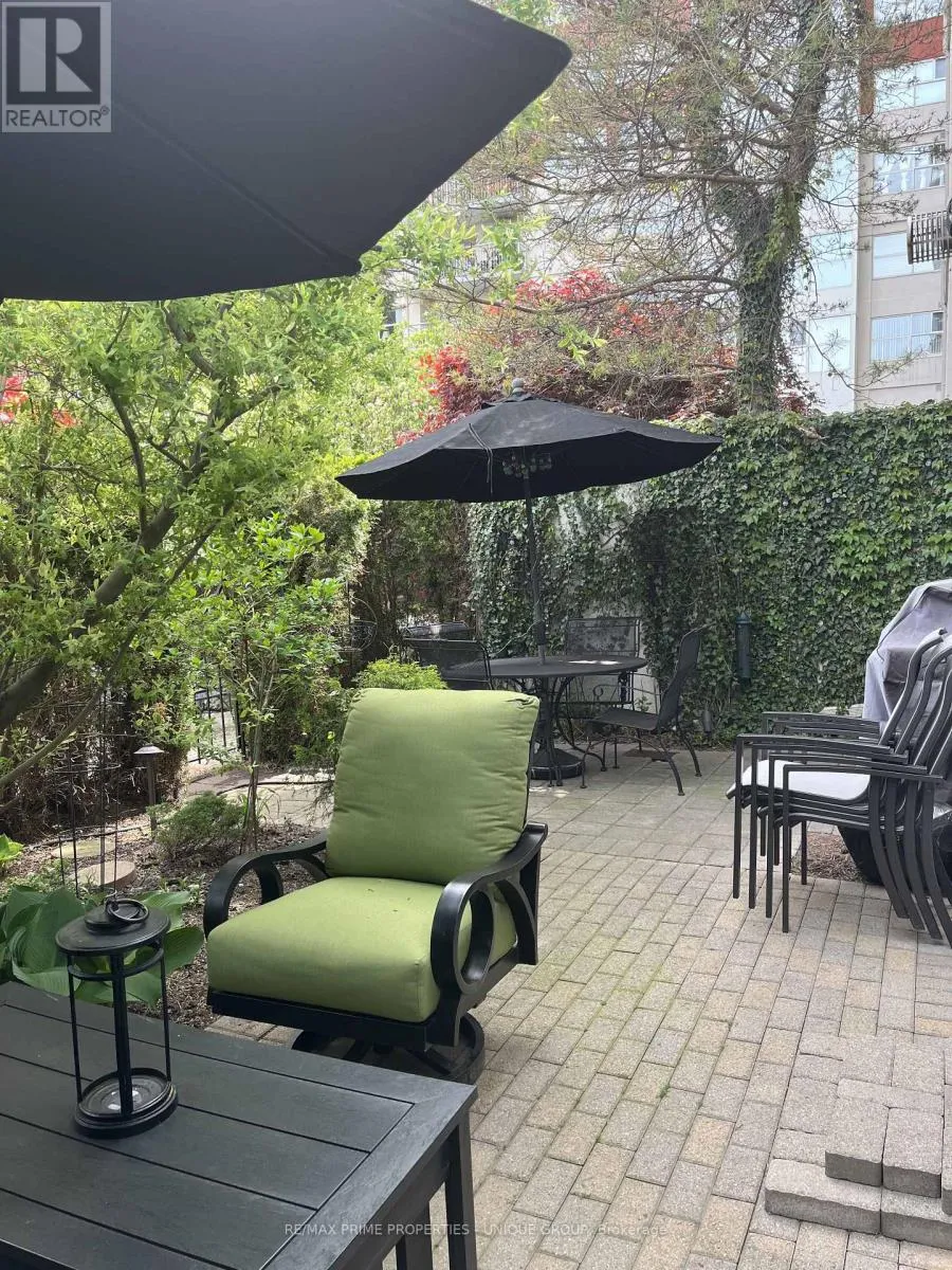 Rarely offered spacious 1 bdrm, 2 bath, approx. 906 SF & generous private patio. Gated building nestled on ravine/protected conservation area offer both an escape and invitation. Few condos offer such unique livability. An entertainer’s paradise boasting secluded backyard with substantial private patio, gas BBQ line & personal garden. A true sanctuary and ideal setting for intimate gatherings & lively