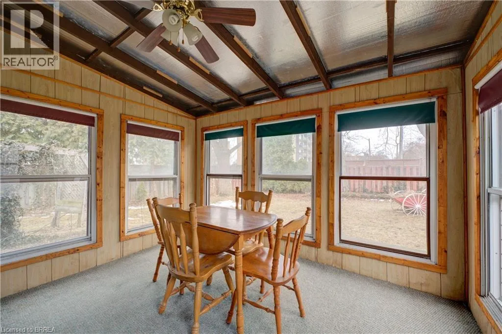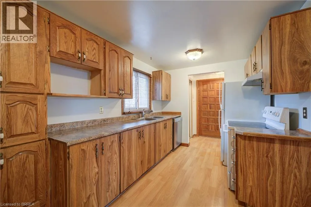 One story bungalow with attached garage backing onto Green space. Great north end location, with excellent highway 403 access as well as a quick drive to all of the north ends amenities. Main floor boasts bright living room, eat-in kitchen, 3 bedrooms, 4 piece bathroom, as well as a sunroom. Lower level has large open family room with wet bar