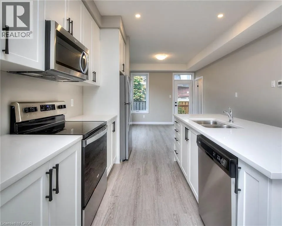 MODERN LIVING TUCKED IN THIS ACTIVE NEIGHBOURHOOD. This stylish stacked townhome is conveniently located in the desirable and growing family-friendly neighborhood of East Galt. This upper unit boasts a bright and airy open-concept layout – the kitchen with a center island offering seating, equipped with new appliances, and a large pantry perfect for casual dining or entertaining. It seamlessly flows