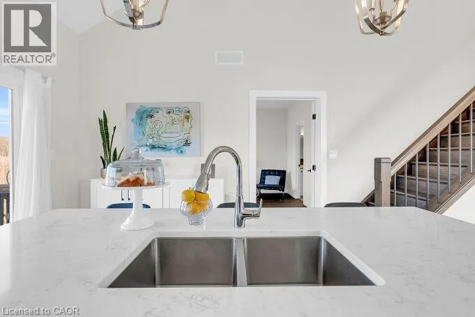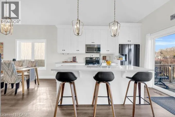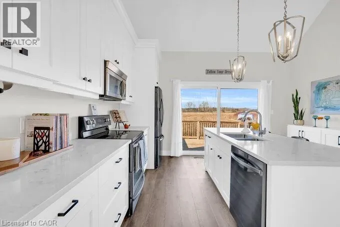 Welcome to this beautifully designed end unit townhome in the charming lakeside community of Port Dover located in a very quiet area just minutes from the beach shops restaurants and everything this beautiful town has to offer. As you enter the home you are greeted by soaring ceilings modern lighting and an open concept layout filled with natural light. The