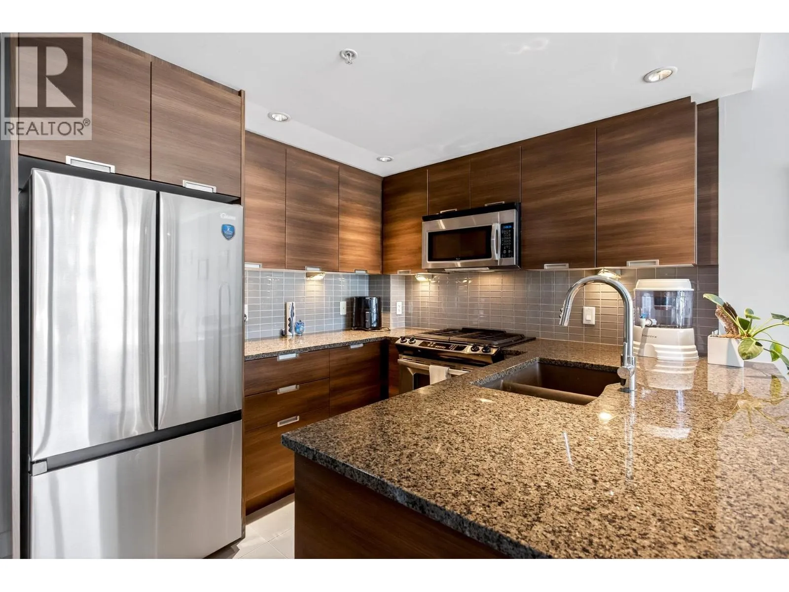 A GRAND OPPORTUNITY IN GRAND CENTRAL. Come see one of the best views this side of Coquitlam! This 1 bedroom & Den (Used as two bedrooms) has a Beautiful North Mountain View! Equipped with Granite countertops, Gas cooking range & Stainless-Steel Appliances. This unit has EXTRAS including HEATED FLOORS AND CROWN MOULDINGS. The Amenities are endless: Outdoor Pool, Hot Tub,