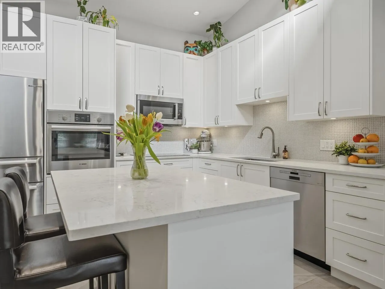 Sun-Drenched Penthouse Living Near Jericho Beach! Experience beachside living at its finest in this fully renovated top-floor sanctuary on the Point Grey/Kitsilano border. Just a short stroll to Jericho Beach, this bright 1 bed/1 bath home features dramatic vaulted ceilings, clerestory windows, and a bright south-facing exposure. The chef-inspired kitchen is a showstopper with tons of storage, and the home