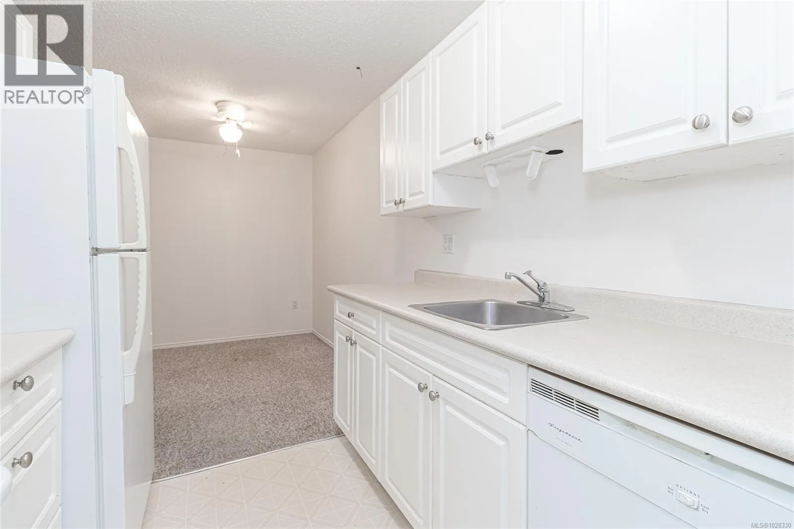 Top floor BRIGHT 2 bedroom home offering great value and in almost move-in ready. Freshly painted clean and minor updates recently completed. But new flooring needs to be budgeted for plus room for your personal touches. The east-facing exposure fills the open-concept living and dining area with gentle morning light. Living room has a fireplace and leads onto private balcony