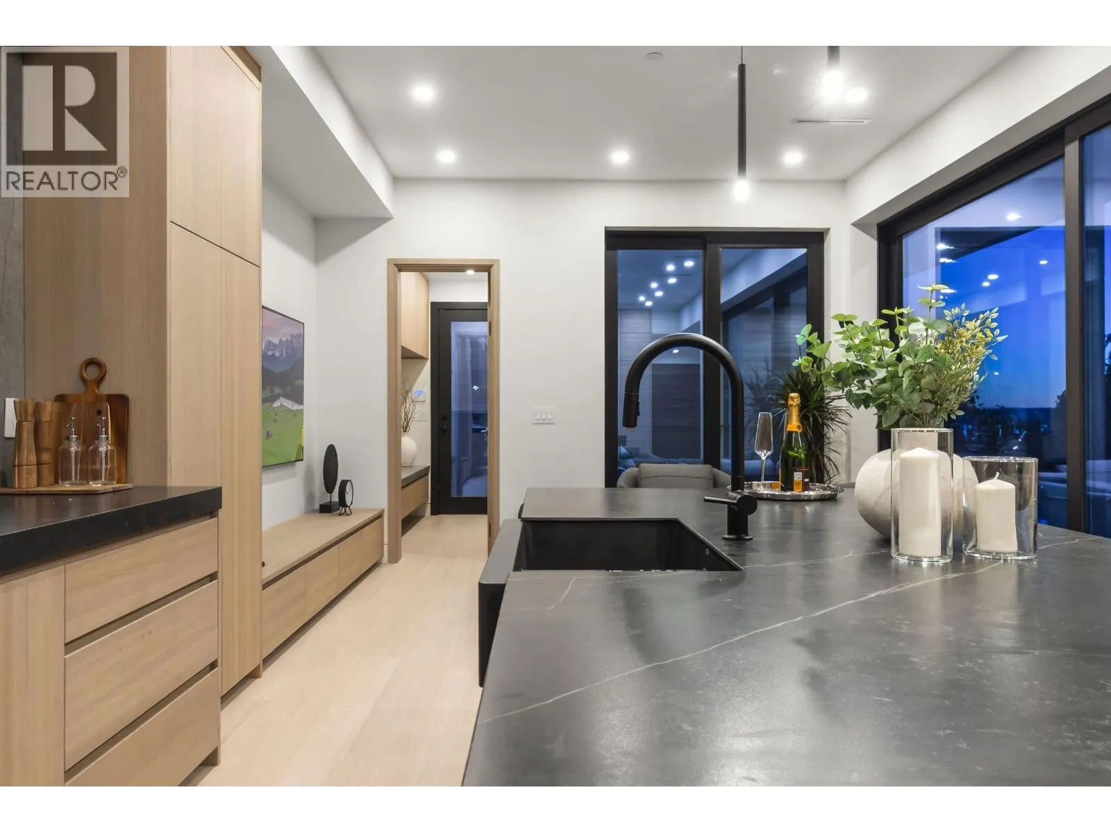 Exceptional Robert Blaney-designed residence in Ambleside´s most coveted pocket. This timeless 3-level, 5-bed, 5-bath farmhouse features impeccable millwork, solid wood doors with hidden hinges, high ceilings, and refined custom finishes throughout. The main level enjoys ocean peek-a-boo views and seamless indoor-outdoor living to a sun-soaked south-facing yard with pool and built-in BBQ. Three vaulted bedrooms up include a stunning primary