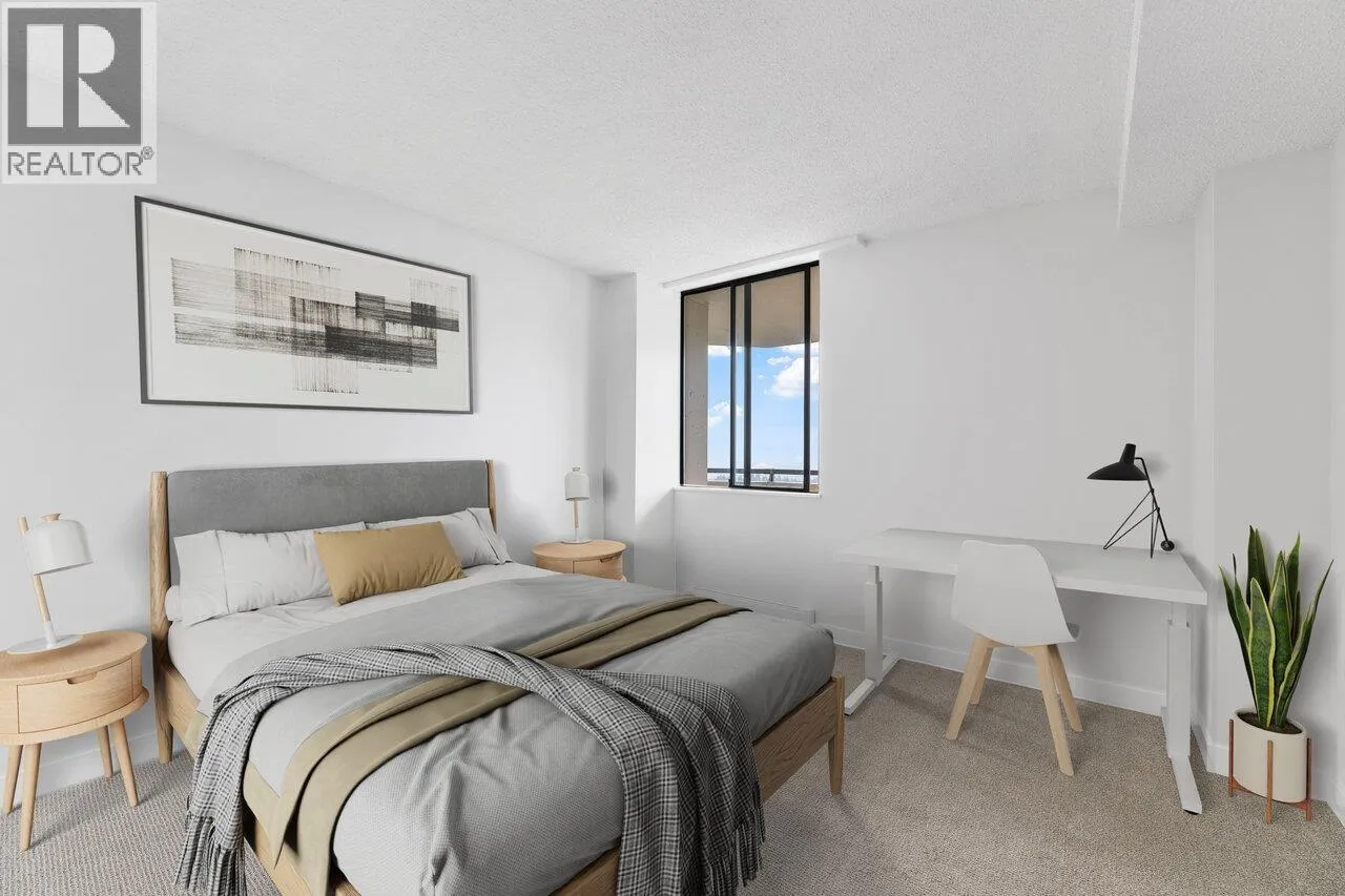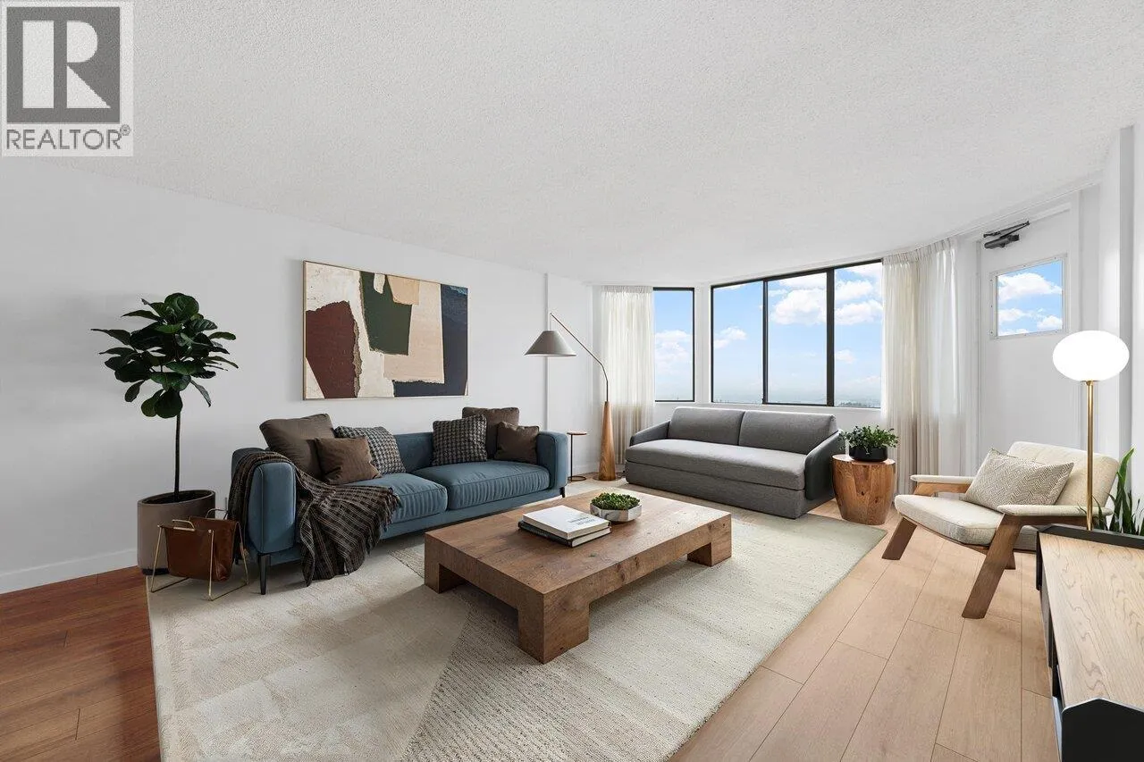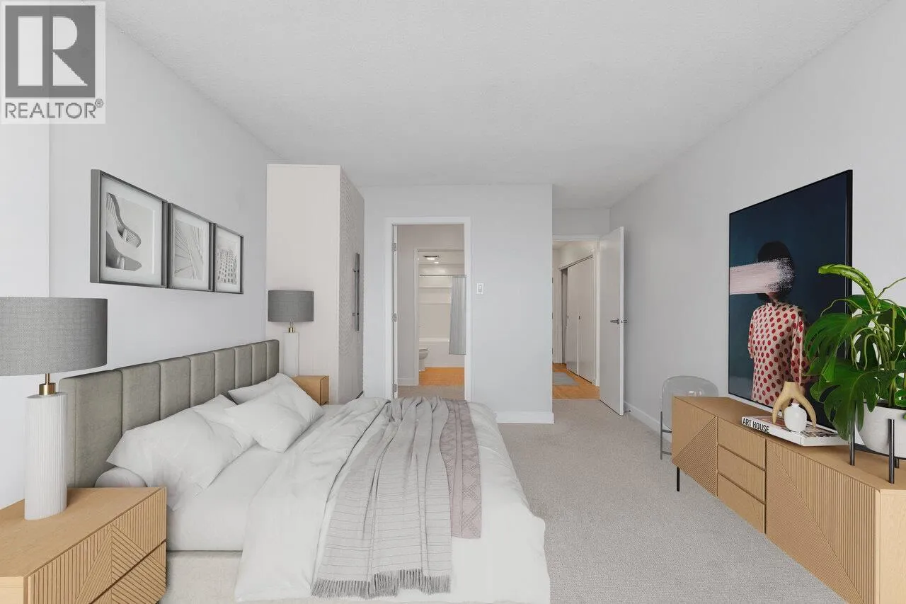 Bright, modern & spacious! This 2-bed RENOVATED CONCRETE condo offers 1,100+ SF of OPEN CONCEPT LIVING featuring a sleek white kitchen with quartz counters, stainless appliances & large central island that flow seamlessly into the living & dining space. South-facing BAY WINDOWS flood the home with natural light & frame breathtaking views from Mount Baker to the Salish Sea, the
