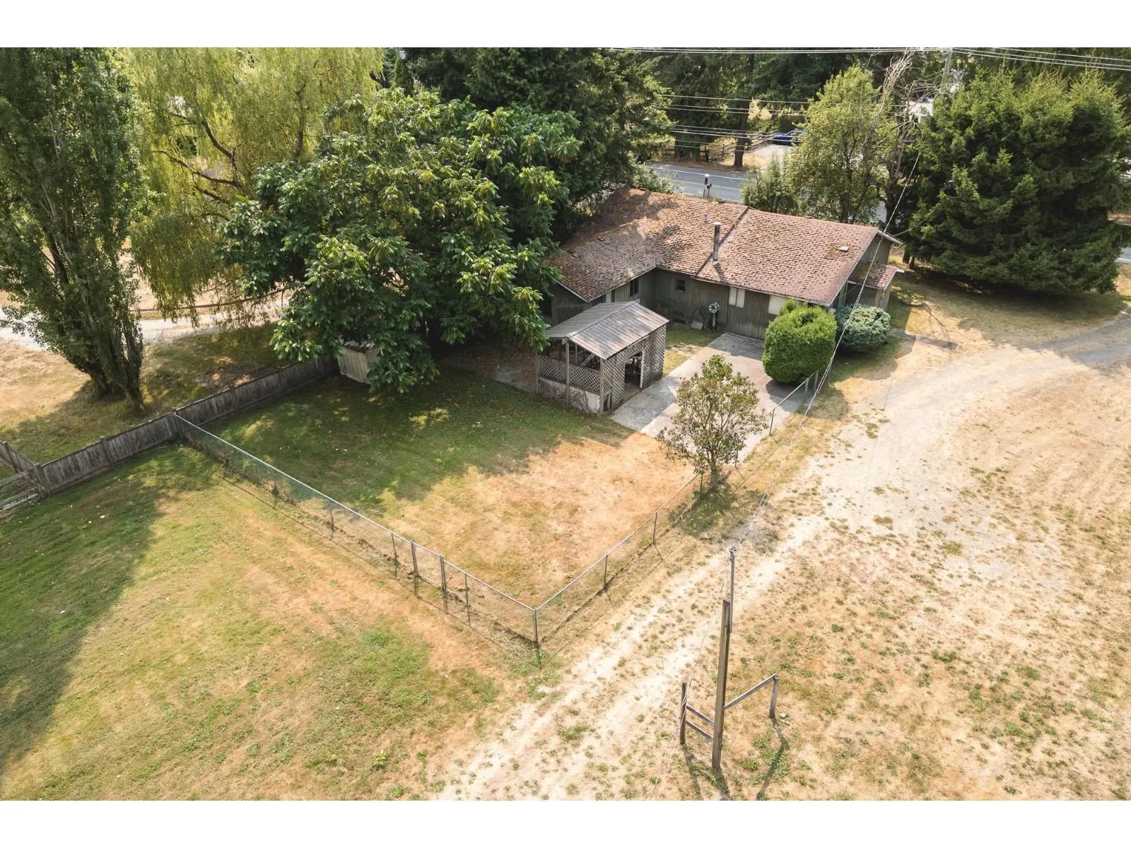 Beautiful, Flat & Private 2-Acre Property in South Langley. Located in the ALR and zoned RU-1, this prime parcel offers the perfect opportunity to build your dream home. The property features a charming 3-bedroom rancher-ideal to live in while you build-plus a 3-stall barn, workshop, and a covered lean-to for additional storage. Natural gas is already on the property, and
