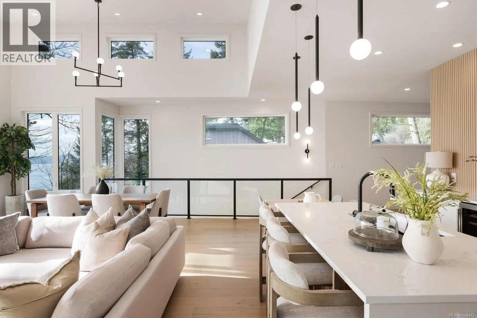 Set on 0.37 acres of southwest-facing waterfront in the coveted Deep Cove neighbourhood of North Saanich, this brand-new contemporary home offers protected ocean views, warm evening sun, and breathtaking sunsets. Built by Villamar Homes, the 3,151 sq.ft. residence blends refined modern design with natural coastal textures. The open-concept main level features soaring 10’–16’ ceilings, oversized sliding doors, and seamless
