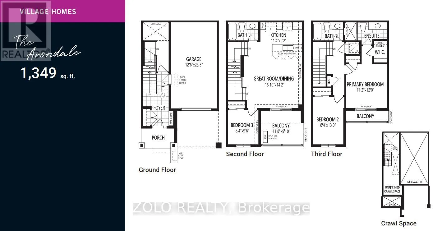 Welcome To This Brand New Freehold (0 fees) Townhome Located In The Highly Sought-After Bowes Community In Milton. This Beautiful Arondale Elevation C Village Home Offers 1,349 Sq Ft Of Thoughtfully Designed Living Space Featuring 3 Spacious Bedrooms, 3 full Bathrooms, And An Attached 1 Car Garage. The Bright Open-Concept Layout Provides Comfortable Living And Entertaining Space. Situated In One