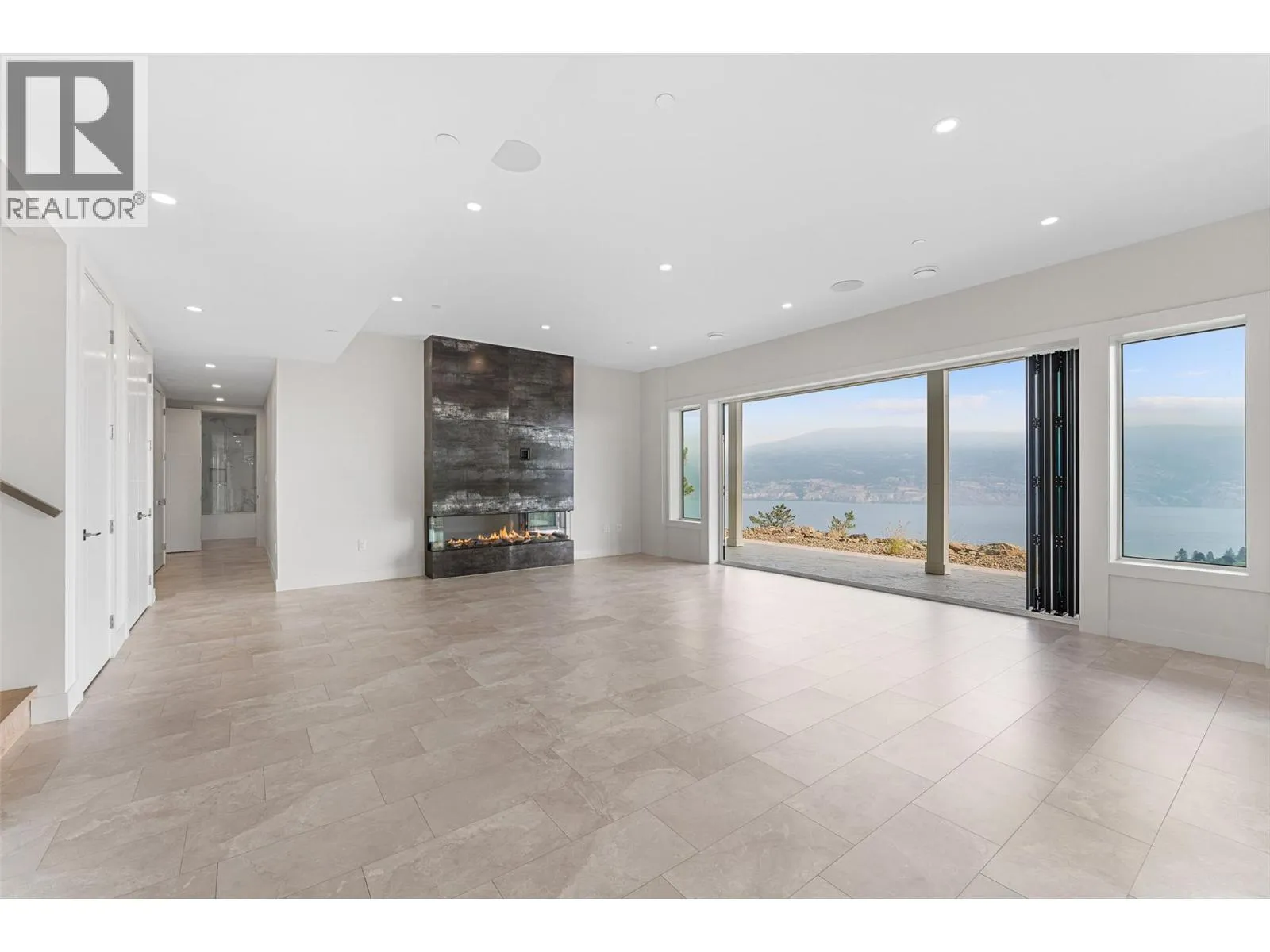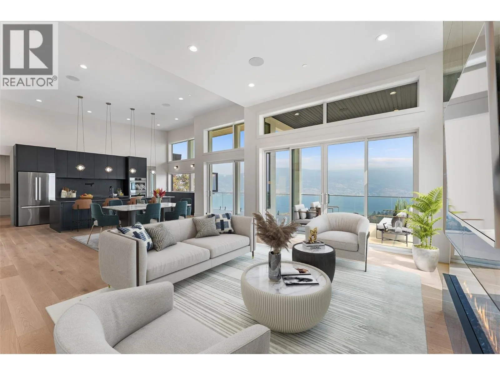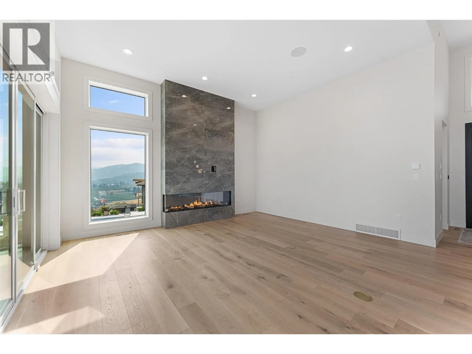Brand new and net-zero ready, this architectural showpiece by Gelcor is set in Summerland’s coveted Hunters Hill community – an area exempt from the foreign buyer ban. With panoramic 180 views of Okanagan Lake, vineyards, & mountains, the home blends design excellence with forward-thinking innovation. Inside, wide-plank oak floors, soaring ceilings, & walls of glass frame the lake beyond. The
