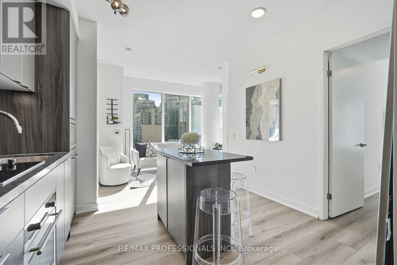 flooring flows seamlessly throughout the home, creating a fresh and sophisticated atmosphere. The designer kitchen is the centerpiece of the space, featuring a custom island crafted to perfectly match the cabinetry and a stunning bespoke chandelier that adds a touch of glamour above the kitchen area. Elegant marble countertops extend into both beautifully renovated, modern washrooms, offering a spa-like feel with timeless finishes. Perfect for entertaining or relaxing, this spacious layout provides three well-proportioned bedrooms and thoughtfully designed living spaces. Enjoy the added convenience of private ensuite laundry, seamlessly integrated for effortless, discreet everyday living. Residents also enjoy exceptional building amenities including a fully equipped gym, multiple party rooms, an outdoor terrace with breathtaking CN Tower views, a BBQ terrace also showcasing stunning CN Tower views, and exclusive access to the Sutton Place Hotel amenities, including their gym and pool. Very close to transit with easy access to Union Station, St. Andrew Station, and the highway for seamless commuting throughout the city. Situated in Toronto’s most exciting neighbourhoods, you’re steps from world-class dining and nightlife including Nobu Toronto, and the iconic Bisha Hotel. Enjoy immediate access to the best restaurants, cafés, shopping, and cultural hotspots that make King West one of the most desirable places to live in the city. This is downtown luxury at its finest – a rare opportunity to live in a stunning home in the heart of it all. (id:62650)
