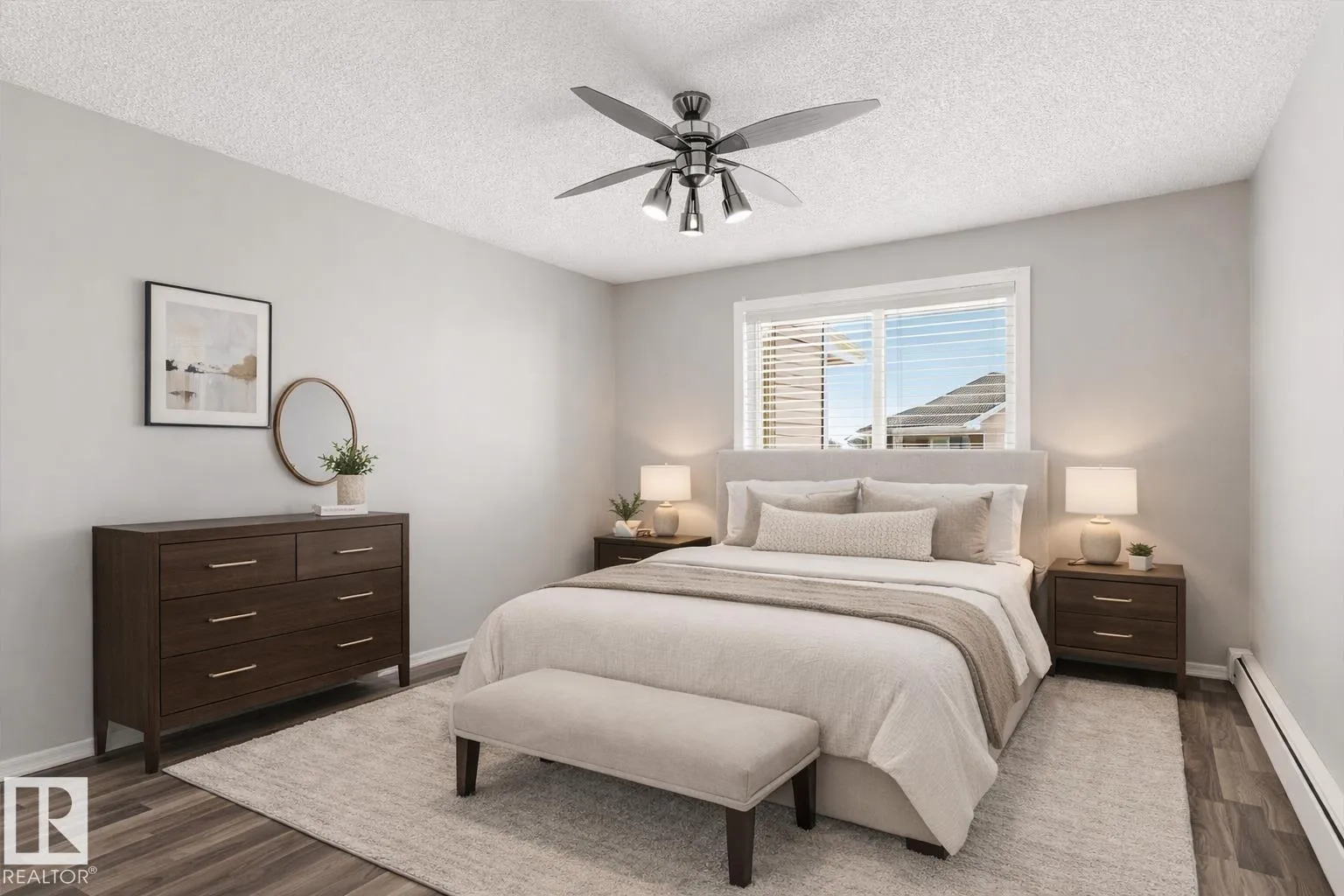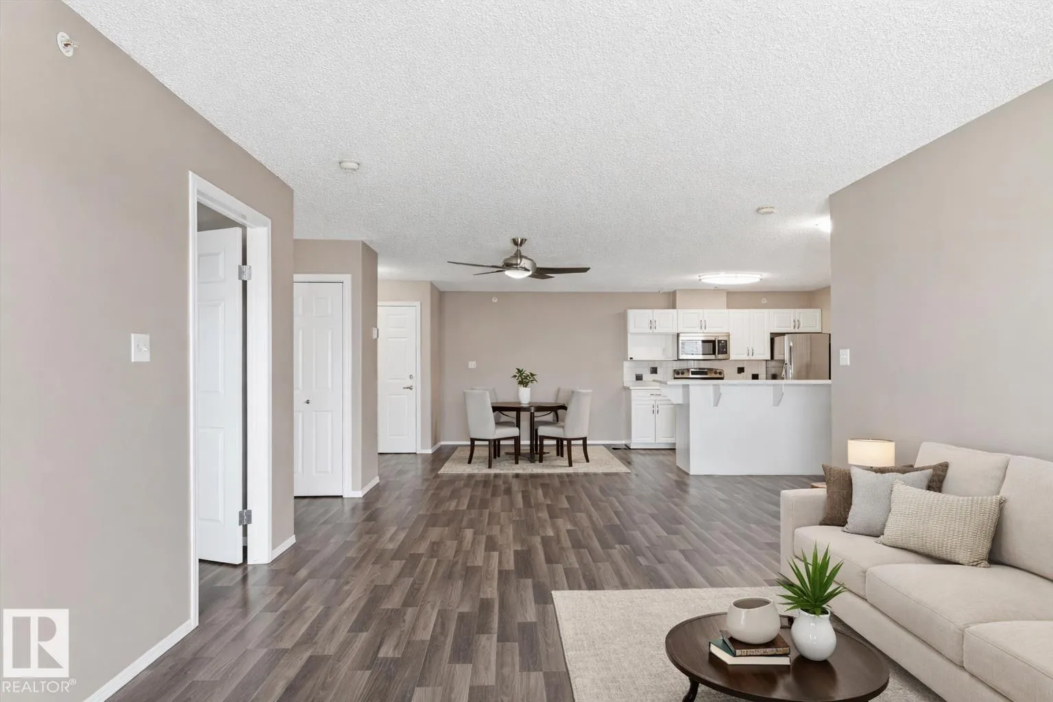 Top Floor | West Facing | Adult Living in Linsford Park! Welcome to Majestic Place East, adult-only condo building located in a quiet, mature neighbourhood just steps from Leduc’s main shopping district, restaurants, and amenities. This bright and inviting 2 bedroom, 2 bathroom home features an open-concept layout with laminate flooring throughout, a cozy corner gas fireplace, and a functional