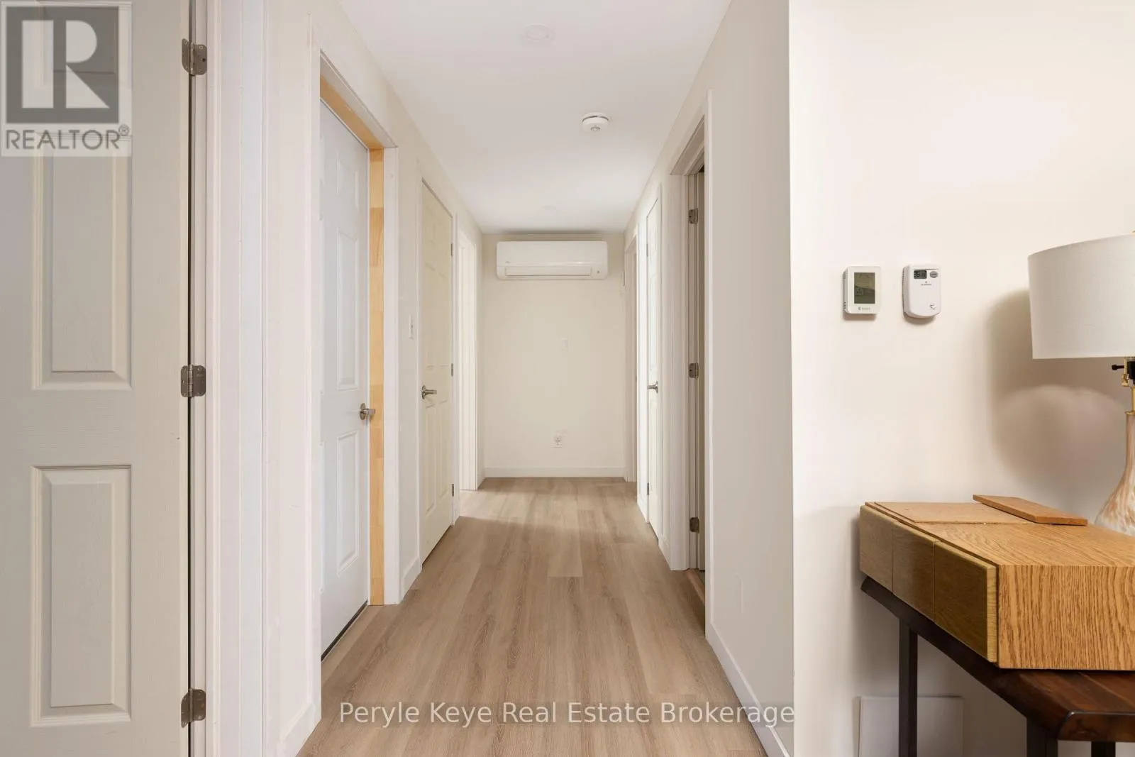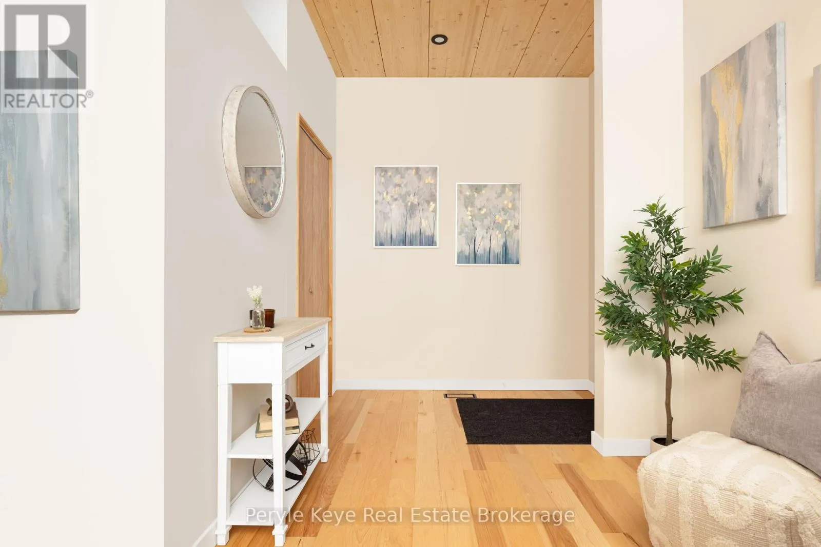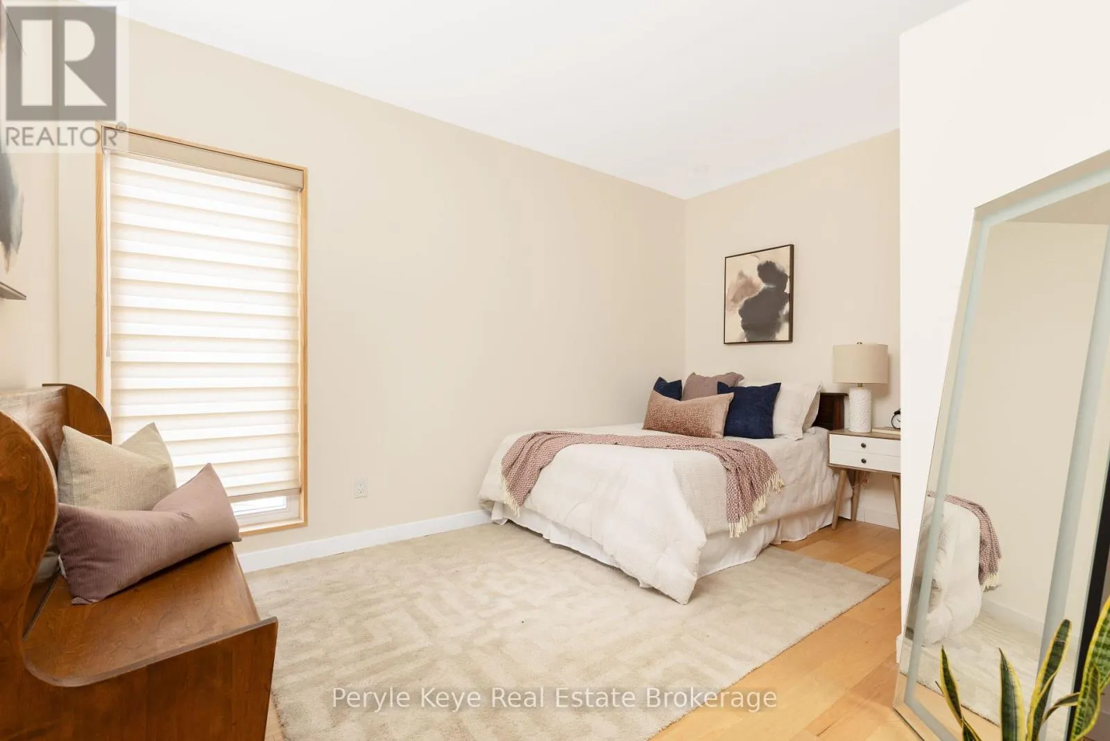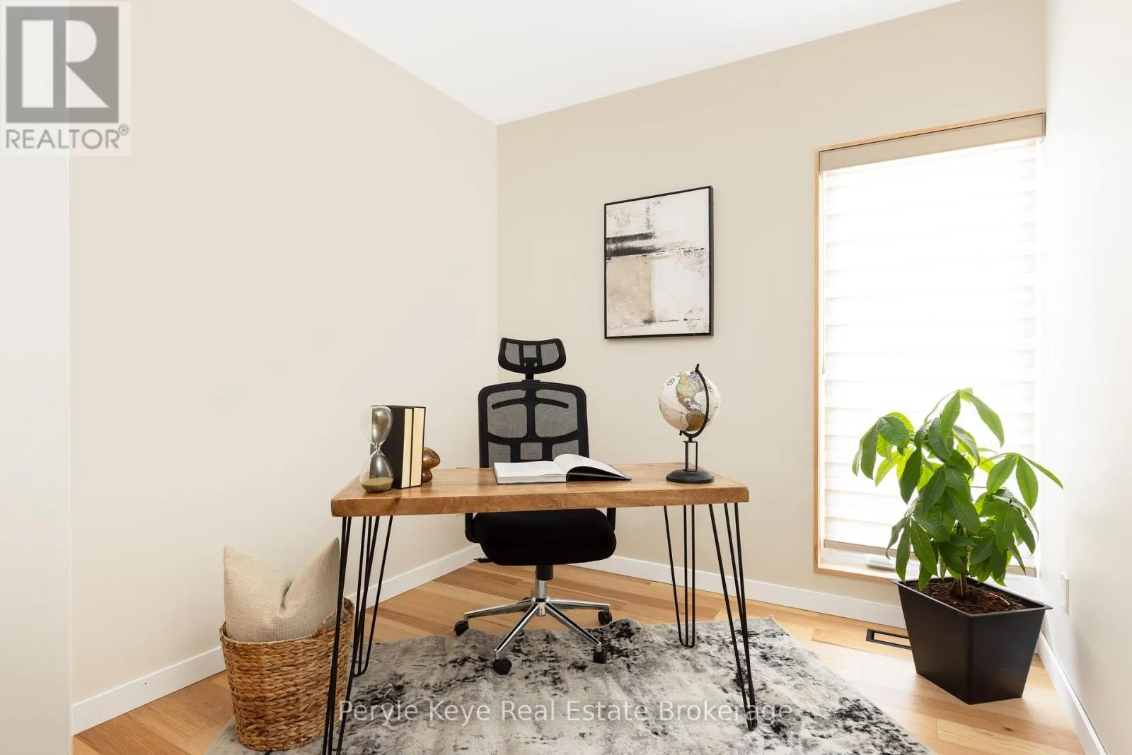 Morning light pours through the wall of windows, stretching across the main living space as the rhythm of the day begins outside. Across the street, the park fills with early dog walkers and the soft pop of a pickleball rally echoes from the nearby courts. A short walk away, the river moves steadily after flowing over the falls in the