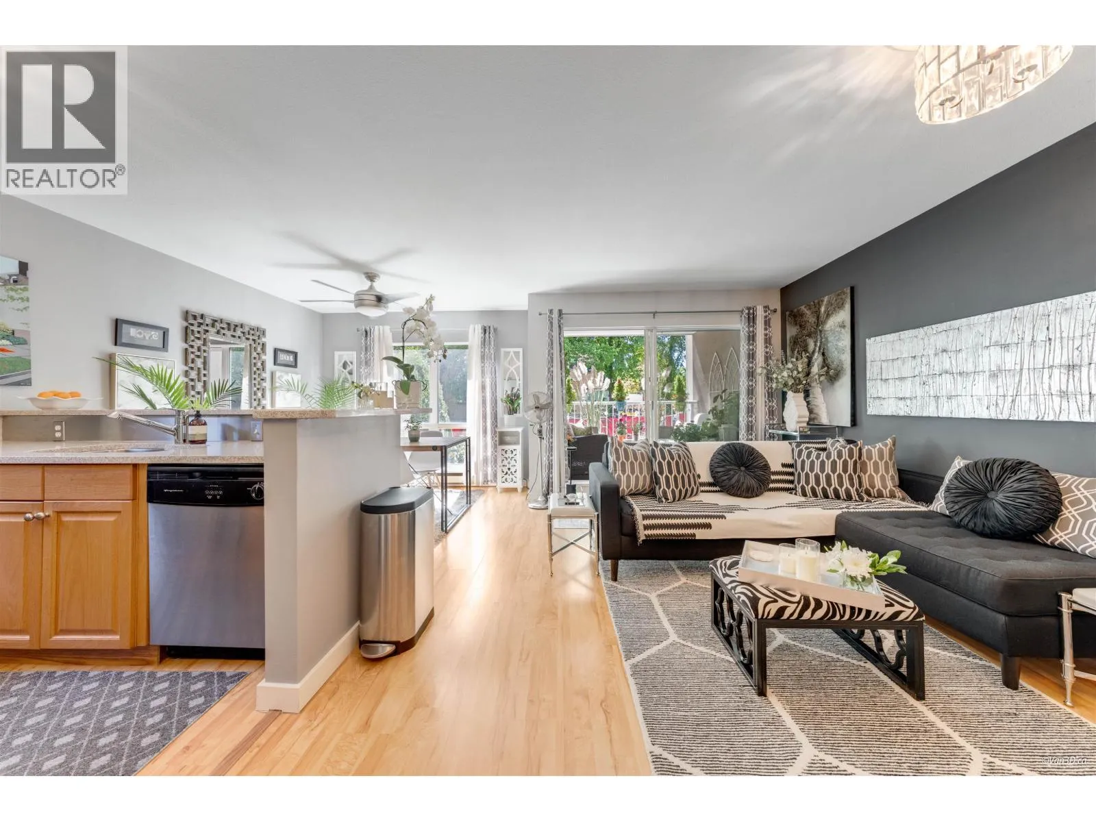 This bright, south facing condo is ready for you to call HOME! Featuring stainless steel appliances, updated lighting, quartz countertops, gas fireplace, and spa-like bathroom. The LARGE covered, quiet patio offers ample light and true indoor/outdoor living that doubles your entertaining space. Enjoy the amenities and conveniences of this excellent Fairview location-steps to False Creek, Granville Island, and VGH. One