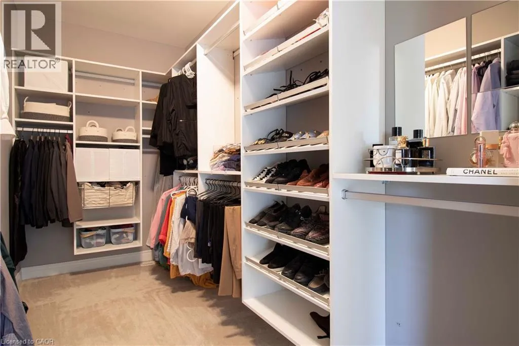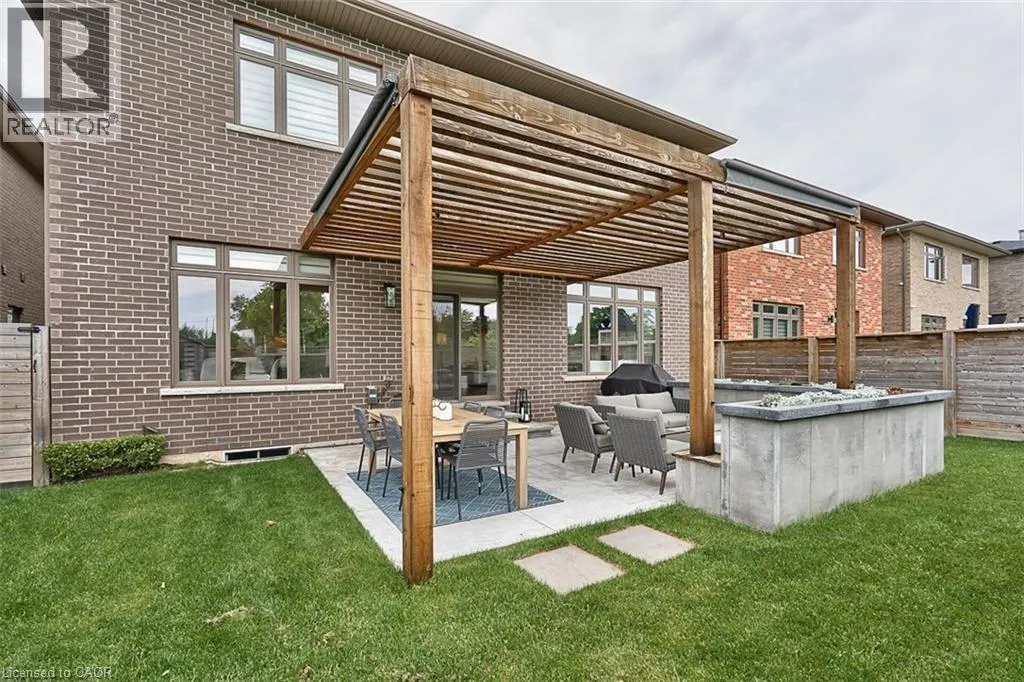 range, wet bar, walk-in pantry, and a generous island ideal for entertaining. The expansive dining area flows into a sun-filled family room with a cozy gas fireplace. A private main-floor office, laundry room, and stylish powder room offer added functionality. Step outside to a professionally landscaped, southern-facing backyard oasis complete with a covered concrete patio, modern pergola, gas fire pit, and full irrigation system. Upstairs you’ll find four oversized bedrooms, including a tranquil primary retreat with a spa-inspired 5-piece ensuite and custom California walk-in closet. Jack & Jill ensuite connects the second and third bedrooms, while the fourth bedroom enjoys its own private bath and walk-in. Located close to top-rated schools, scenic parks, boutique shopping, Hamilton Golf & Country Club, and easy highway access—this residence offers the ultimate blend of comfort, elegance, and convenience. (id:62650)