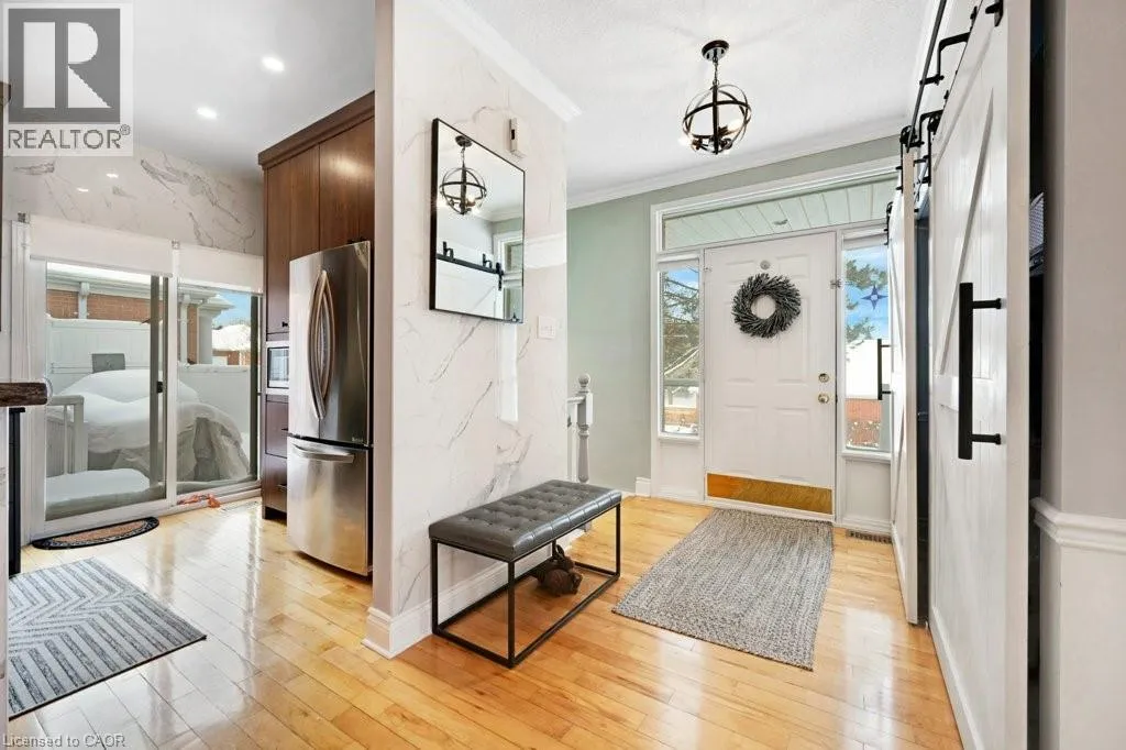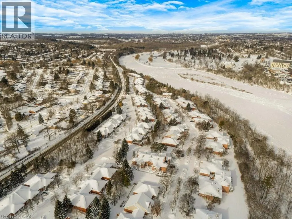 Experience the perfect blend of nature and modern luxury at the Riverwalk Condominiums. This stunning two-bedroom raised bungalow offers a rare lifestyle opportunity along the banks of the Grand River. The heart of the home is a chef-inspired kitchen, fully updated in 2024/2025 with rich walnut cabinetry, porcelain walls, and a striking mix of stainless steel and leathered granite countertops.