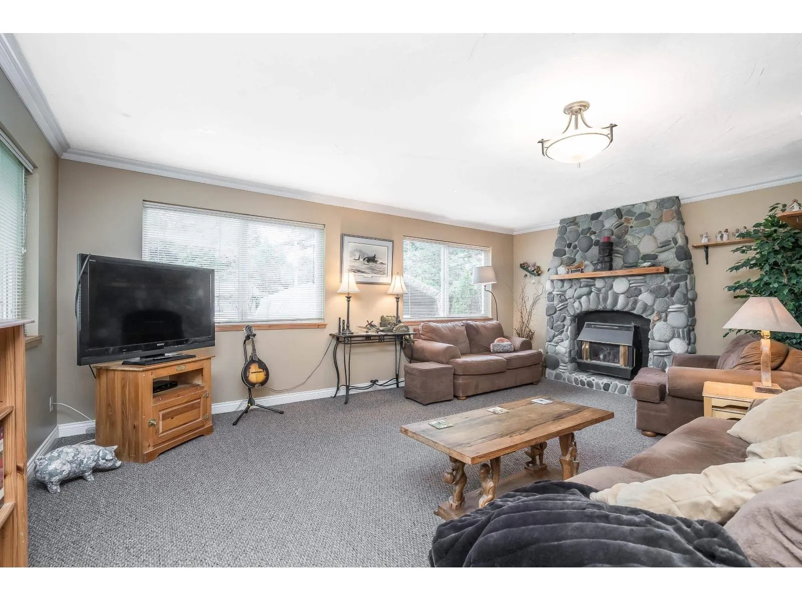 Charming 1550 sqft rancher in the heart of Brookswood on a beautiful private parklike 12,176 sqft lot! Bright & spacious open plan layout with a large welcoming family room with a river rock gas fireplace, creating a warm & inviting space for everyday living. Picture window living room with 2nd river rock gas fireplace adjacent dining room & bright kitchen.