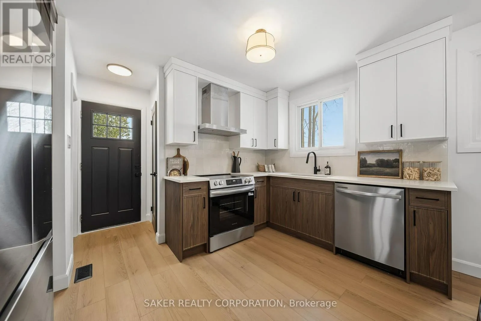 Professionally Renovated Semi-Detached! Welcome to 206 Admiral Drive. This magazine-worthy renovation is as tasteful, as it is professionally executed. From the moment you step inside, the shiplap fireplace finished in a dramatic Iron Ore stops you in your tracks and beautifully anchors the living space. The white walnut kitchen is both stunning and functional; featuring quartz countertops, artisan subway tile