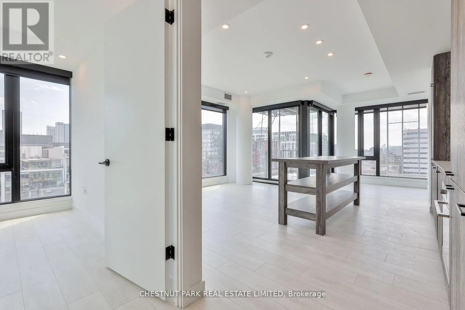 Rarely available 2bedroom, 2 bath in Coveted Art Deco inspired Waterworks. Spacious Corner suite is flooded with sunlight & unobstructed south west views over St. Andrews playground and dog park. Walk out to corner wrap around balcony. Freshly painted w/ has an open concept living kitchen w/large centre island. Ideal layout with a split bdrm plan for privacy.