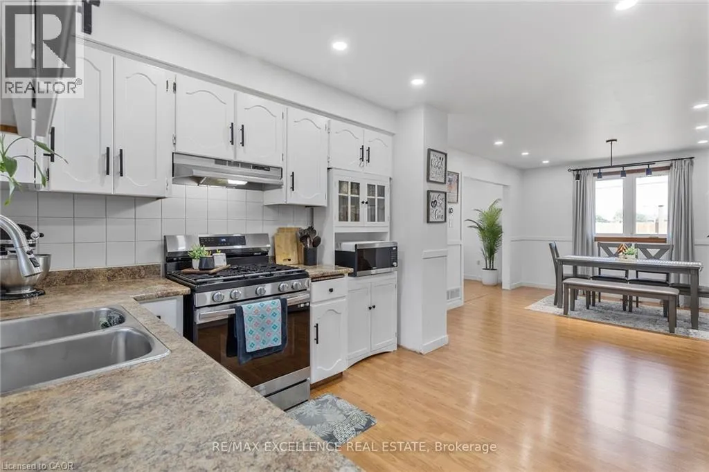 unfinished, providing an excellent opportunity to customize additional living space or rental setup. Recent upgrades (within past 3 years) include newer appliances (fridge, gas stove, dishwasher, washer & dryer), energy-efficient pot lights on both main and second levels, fresh paint with feature wall accents, modified kitchen and bathrooms, new fence and enhanced security with cameras and video doorbell. The finished second level includes two additional bedrooms, updated carpet-free flooring. With a single car garage and a double driveway, this home offers space, comfort, and future flexibility. Located in a family friendly neighbourhood close to schools, parks, shopping, and highway access, this is an ideal home for multi-generational living or investment. (id:62650)